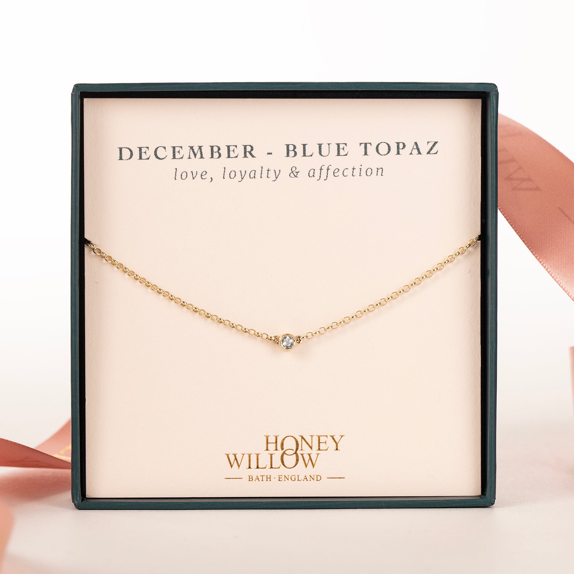 December Birthstone Necklace - Single Blue Topaz Solitaire