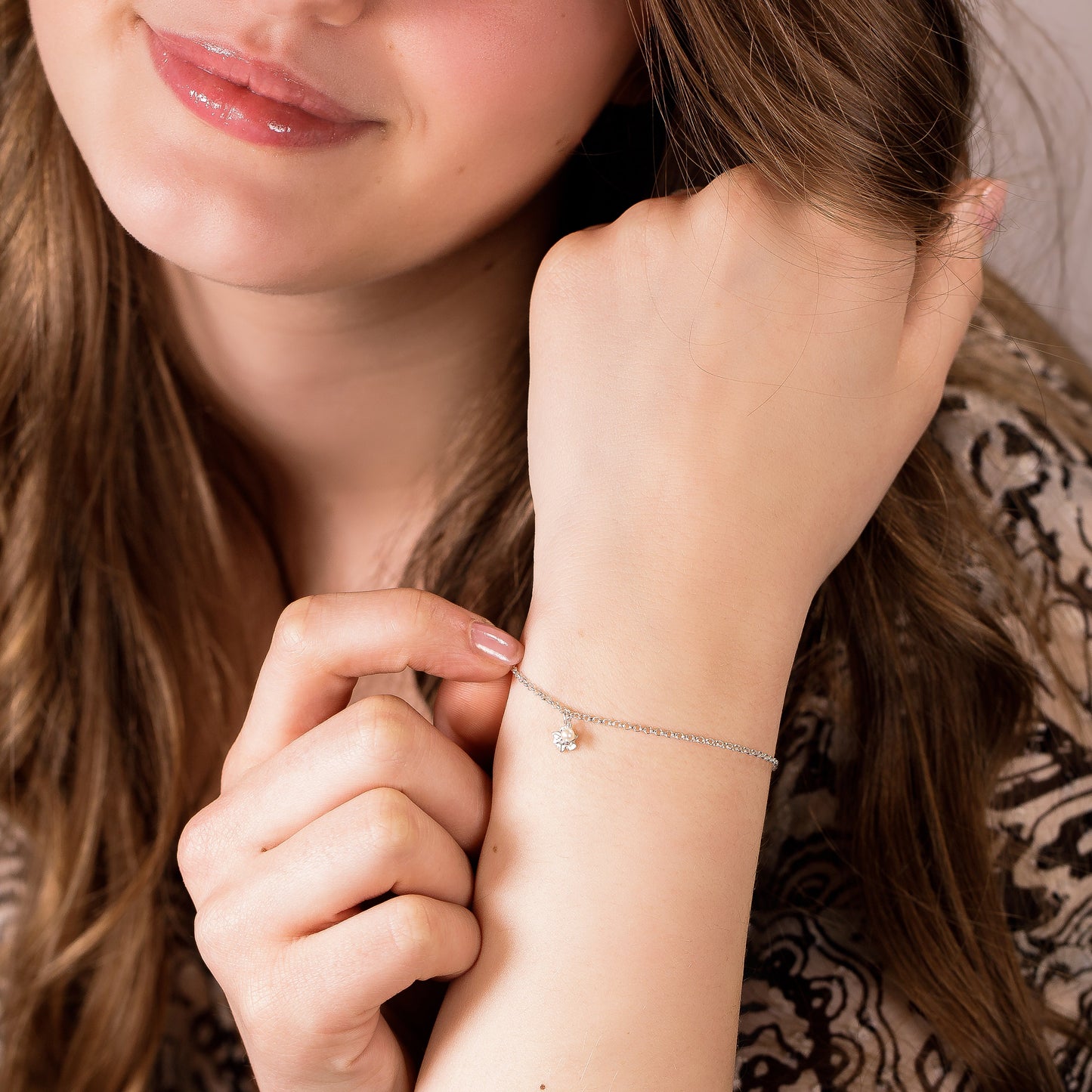 Delicate Daffodil Flower Bracelet - Joy - Silver & Pearl