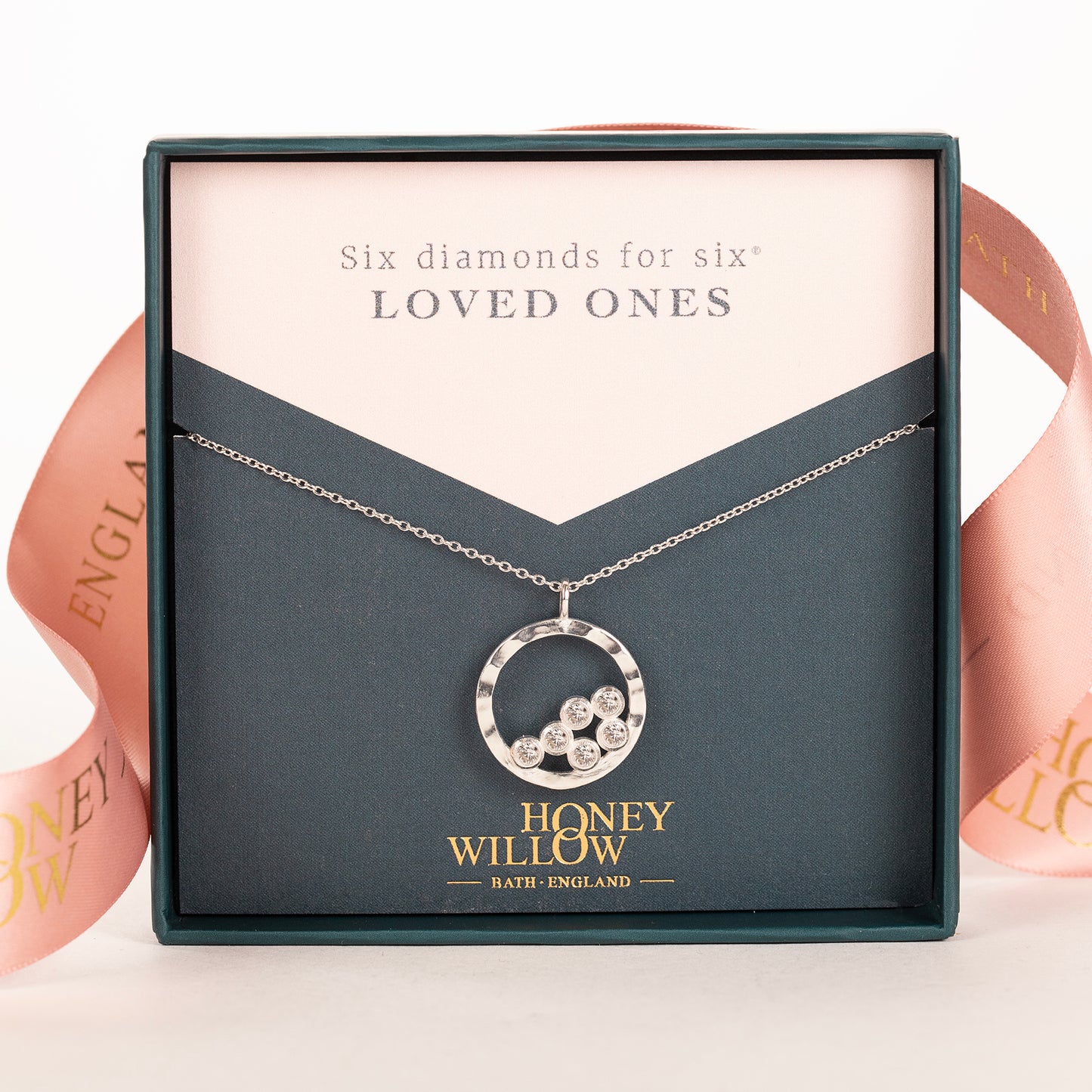 Give your loved one an original six diamonds for six® loved ones necklace, designed and handmade in Bath, England.