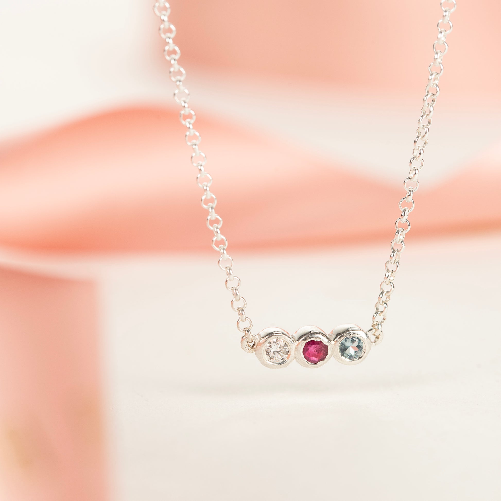 Family Birthstone Necklace - 3 Birthstones for 3 Loved Ones - Silver