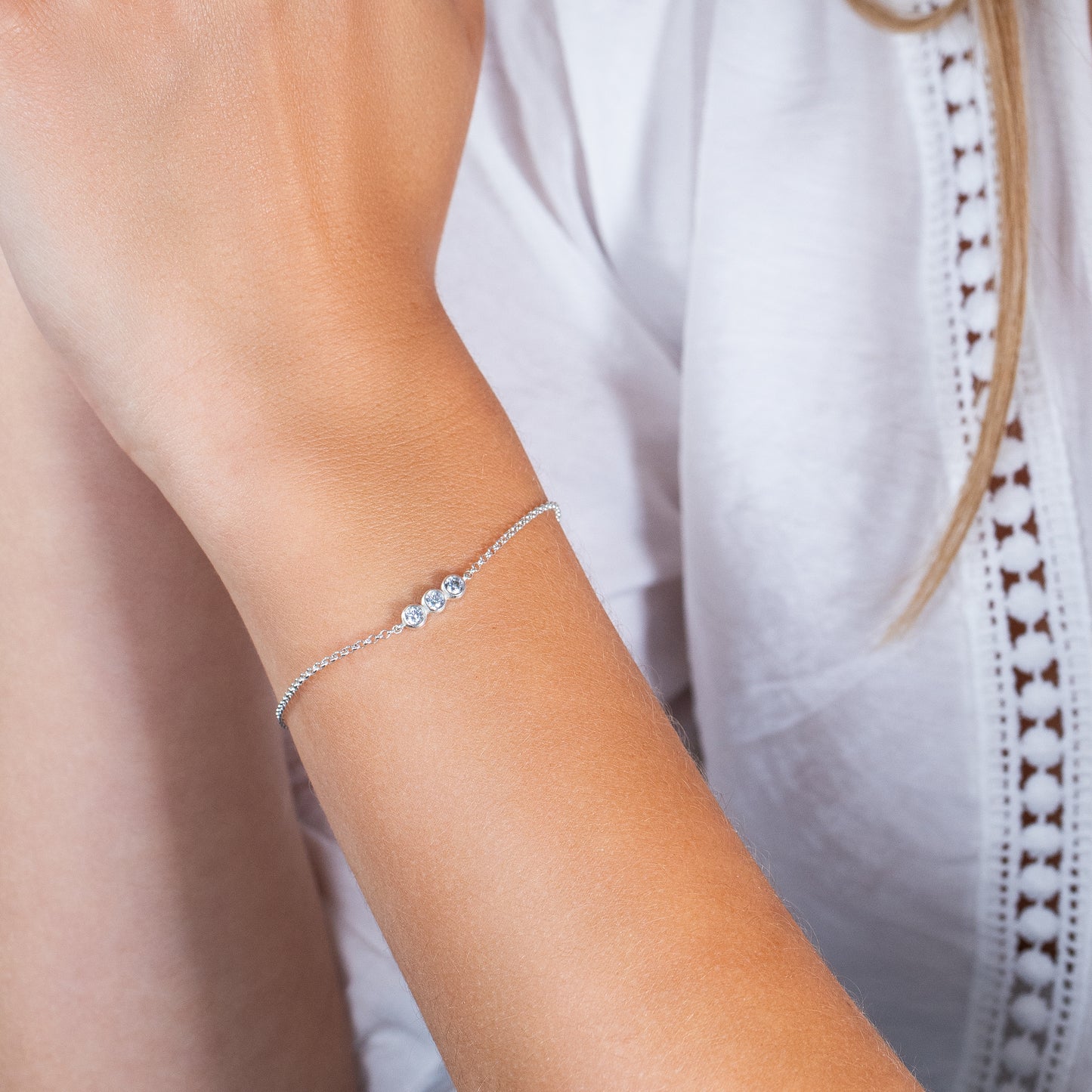 Family Diamond Bracelet - 3 Diamonds for 3 Loved Ones - Lab Grown Diamond & Silver