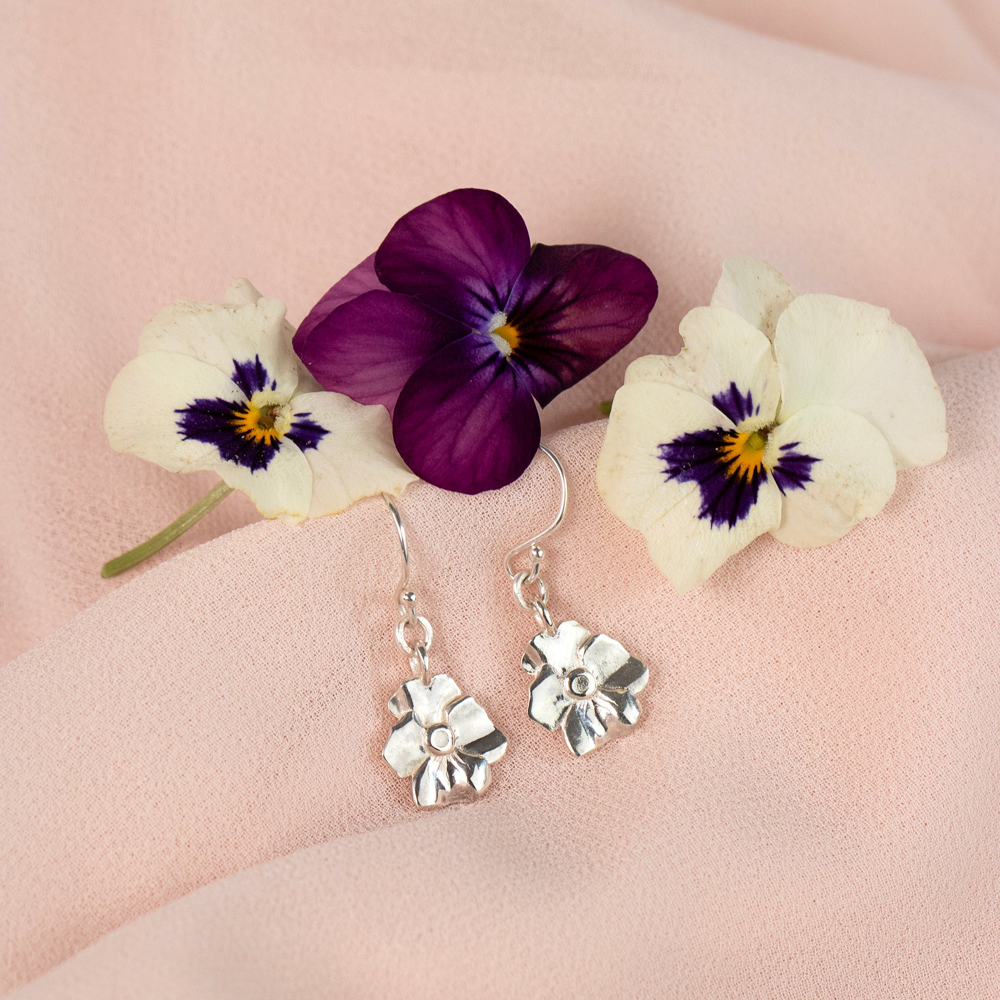 Celebrate her birth month with dainty violet flower earrings, made with recycled silver.