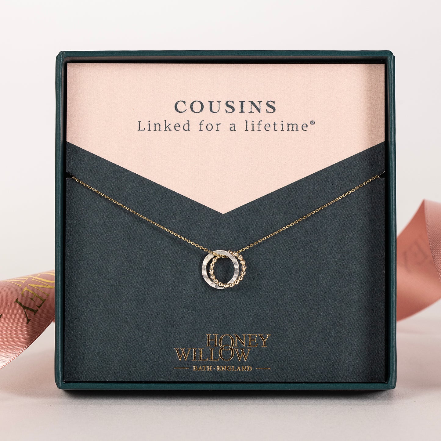 Circles symbolise infinite love, strength, protection and unity. Two dainty circles are linked for a lifetime®.