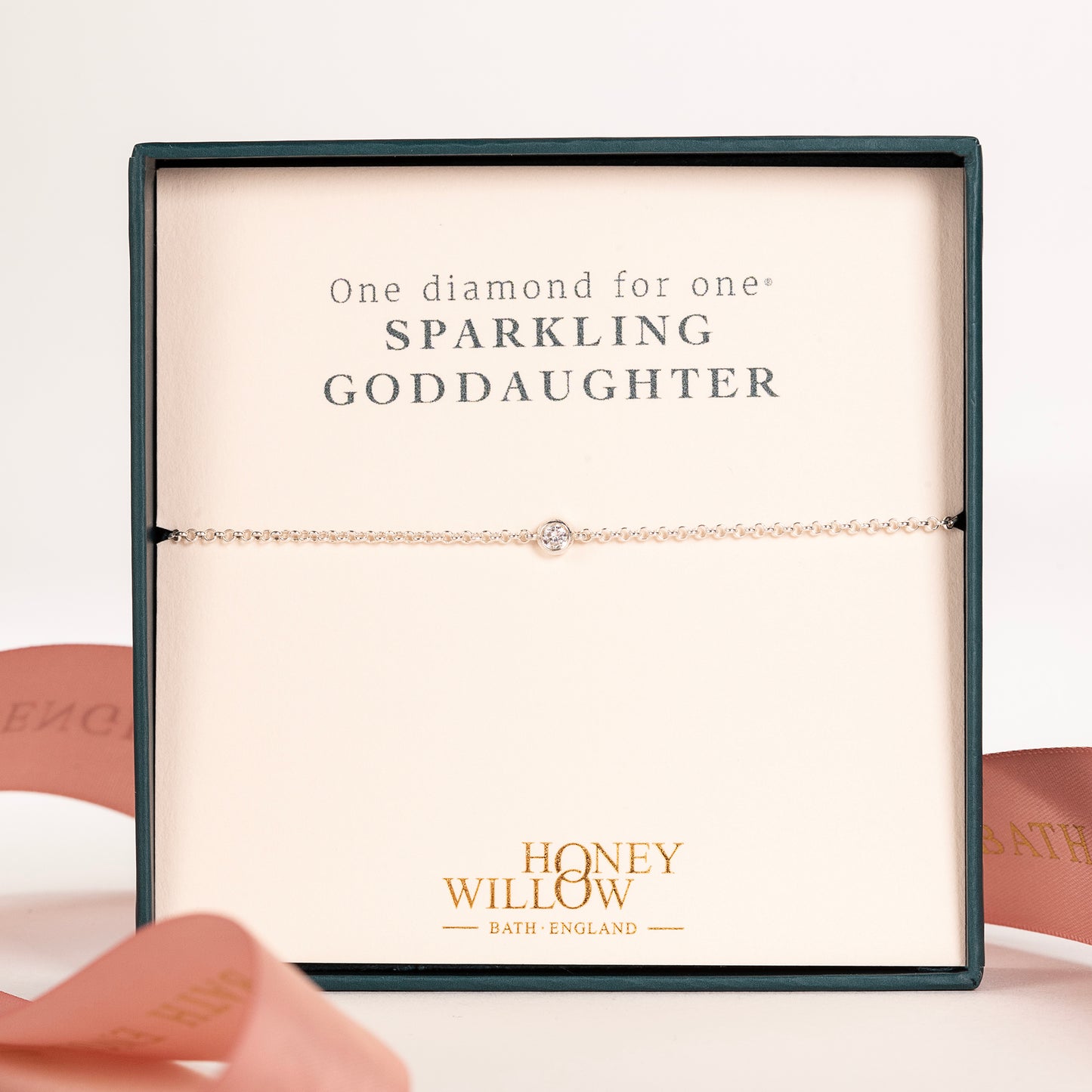 Give your goddaughter a dainty silver bracelet, handmade with a single lab-grown diamond.
