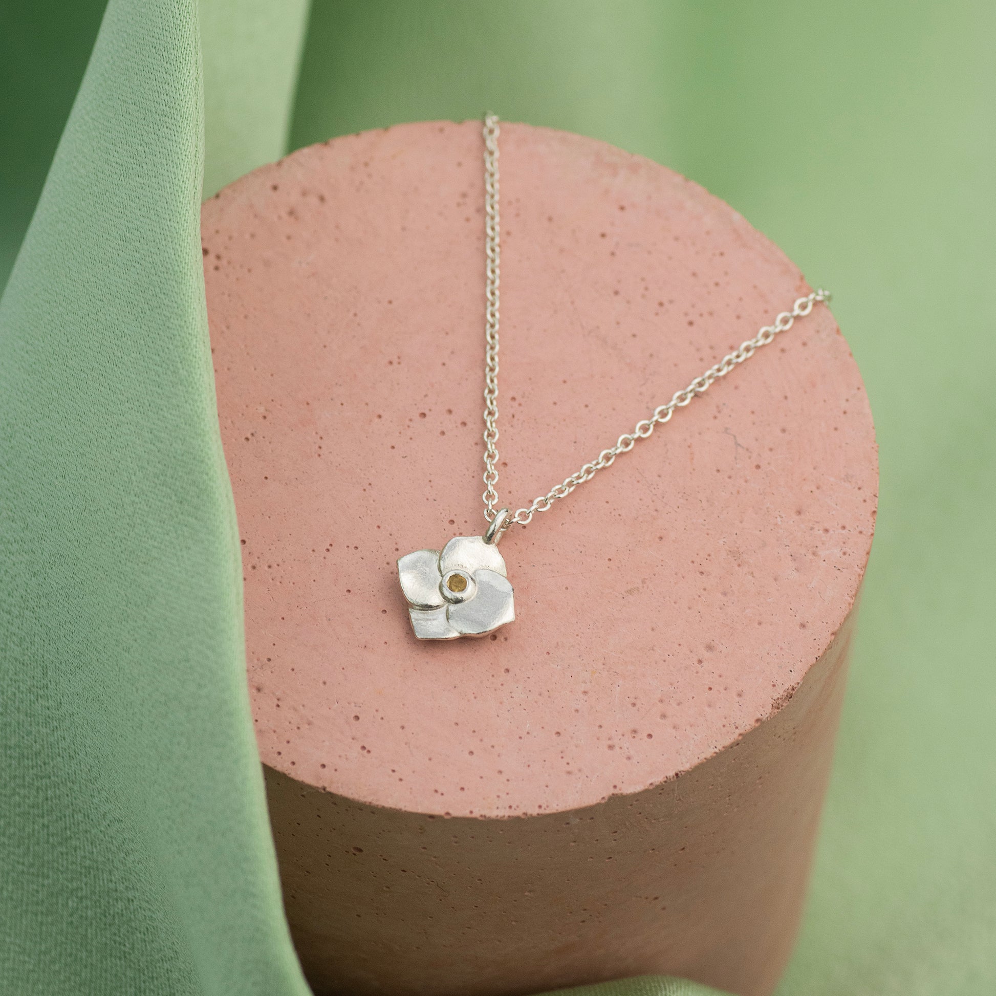 Hydrangea Flower Birthstone Necklace - Gratitude - Silver