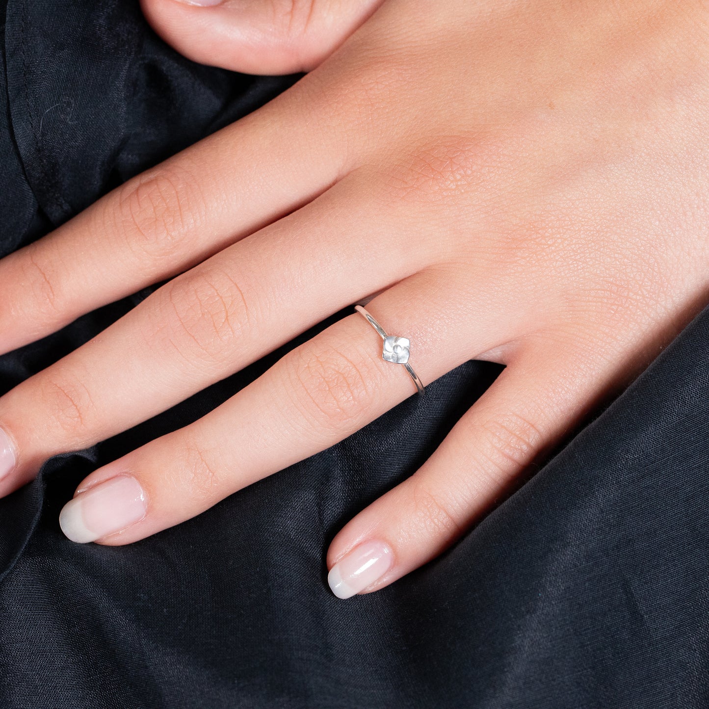 Hydrangea Flower Ring - November Birth Flower - Silver