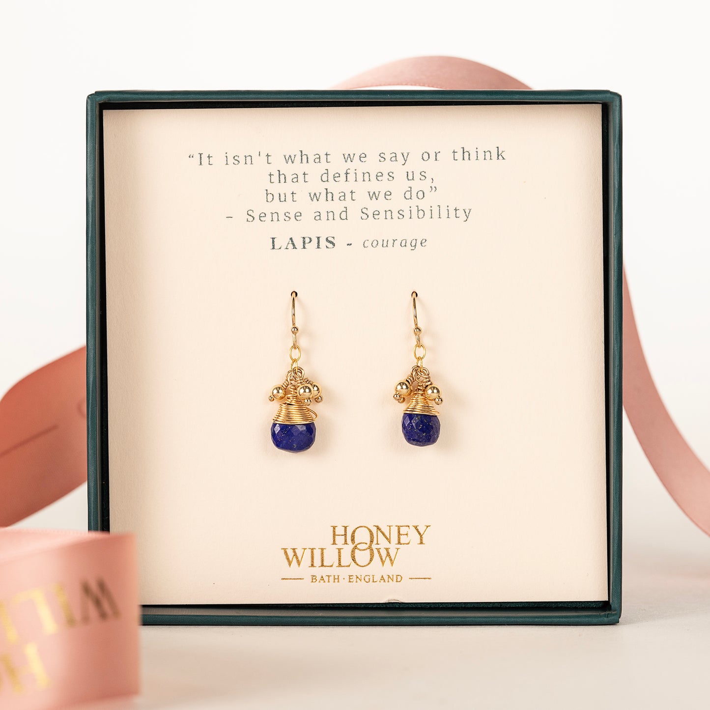 Inspired by Jane Austen, the note inside the gift box reads "It isn't what we say or think that defines us, but what we do" from Sense and Sensibility. A personalised note can be made if requested.