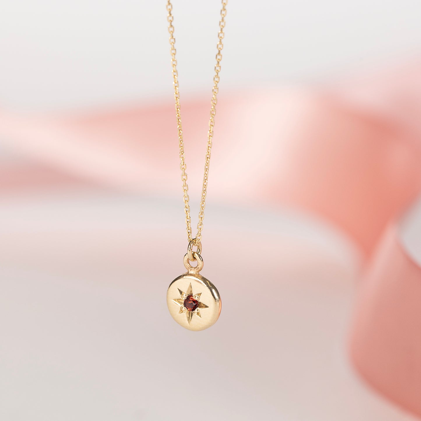 January Birthday Gift - Garnet Star Set Necklace - 9kt Gold