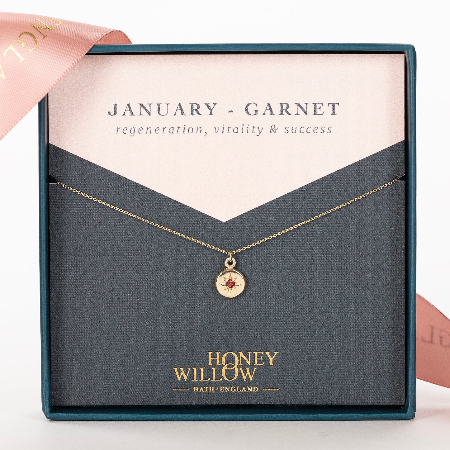 Celebrate her January birthday with a dainty 9kt gold necklace, star-set with her birthstone.