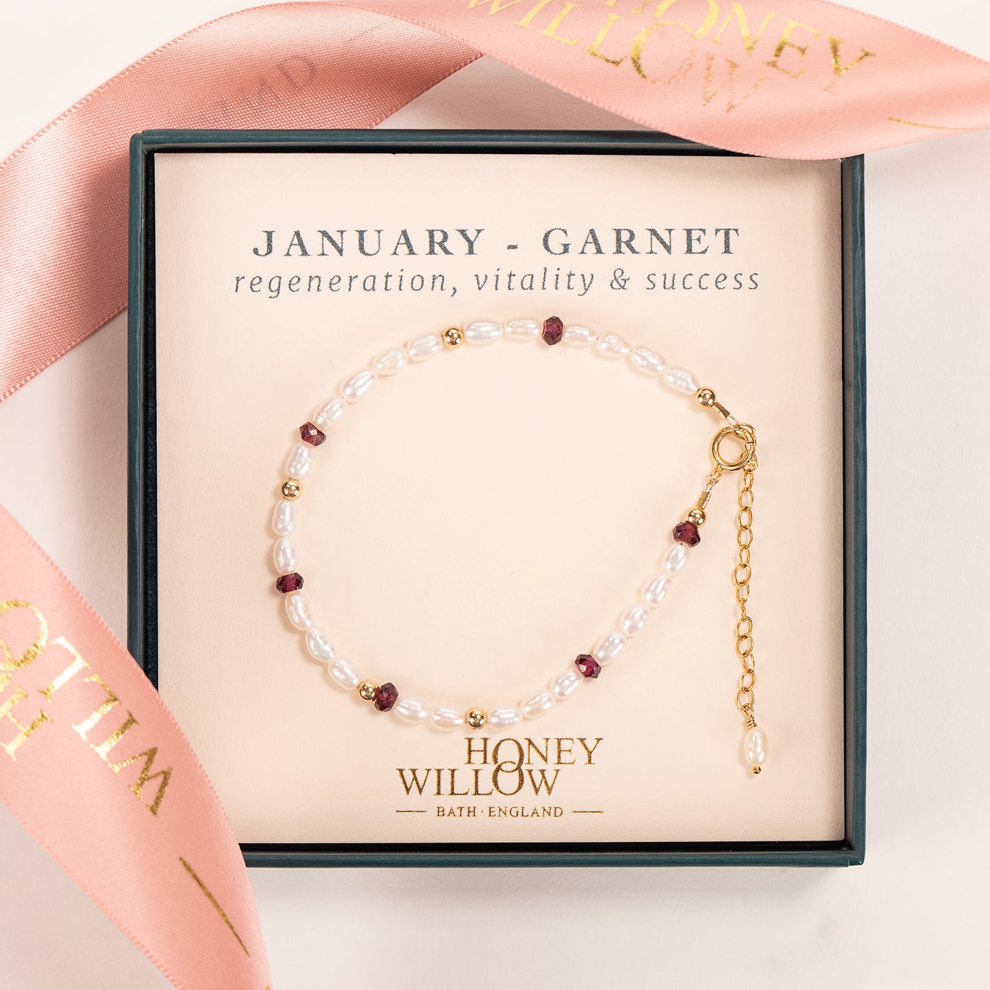 January Birthstone Bracelet - Seed Pearl & Garnet