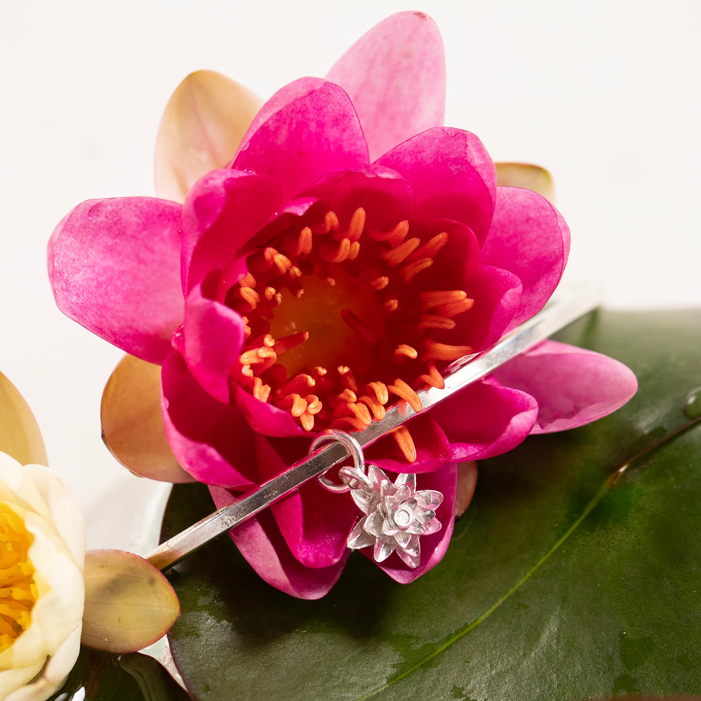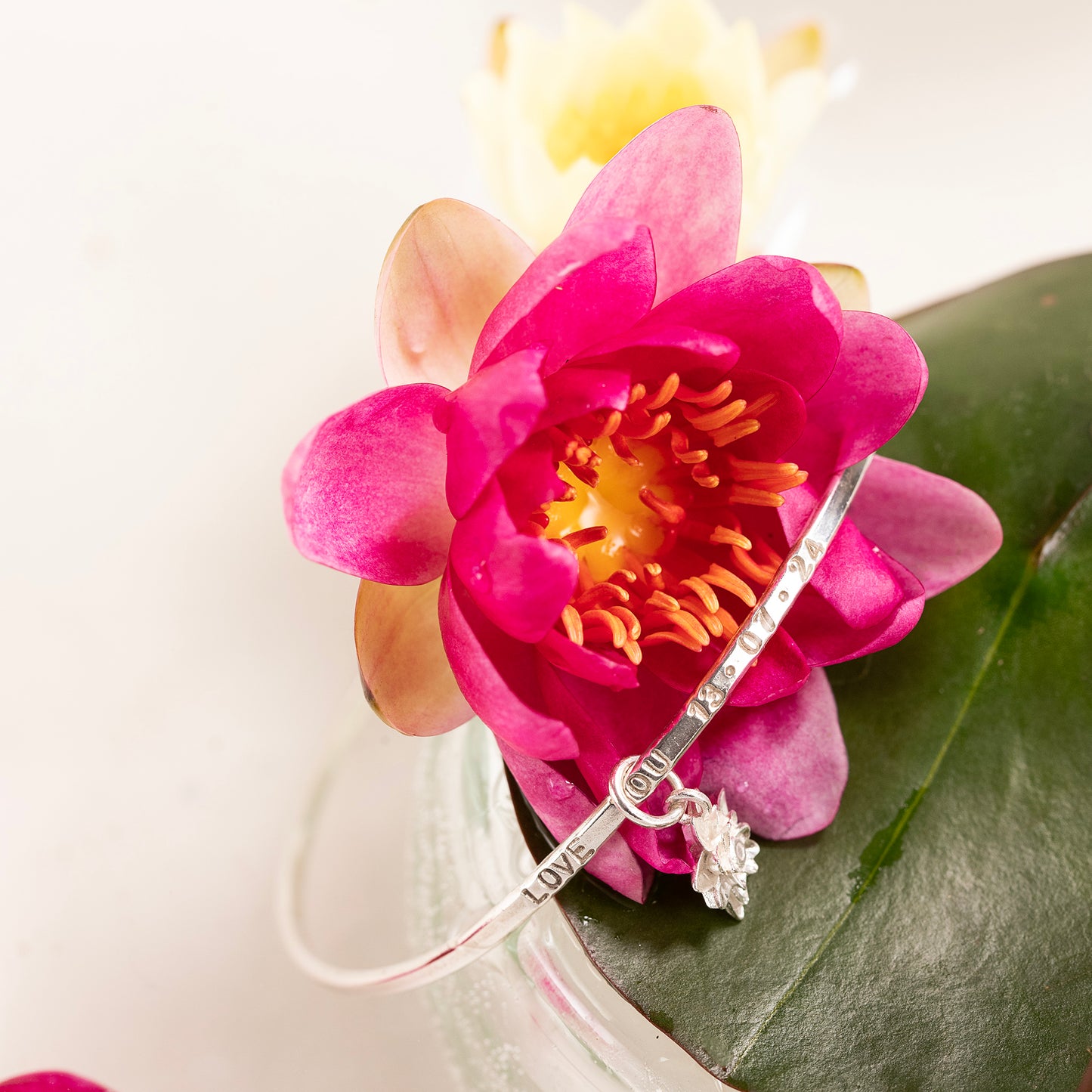 July Birth Flower Jewellery - Personalised Waterlily Bangle - Silver