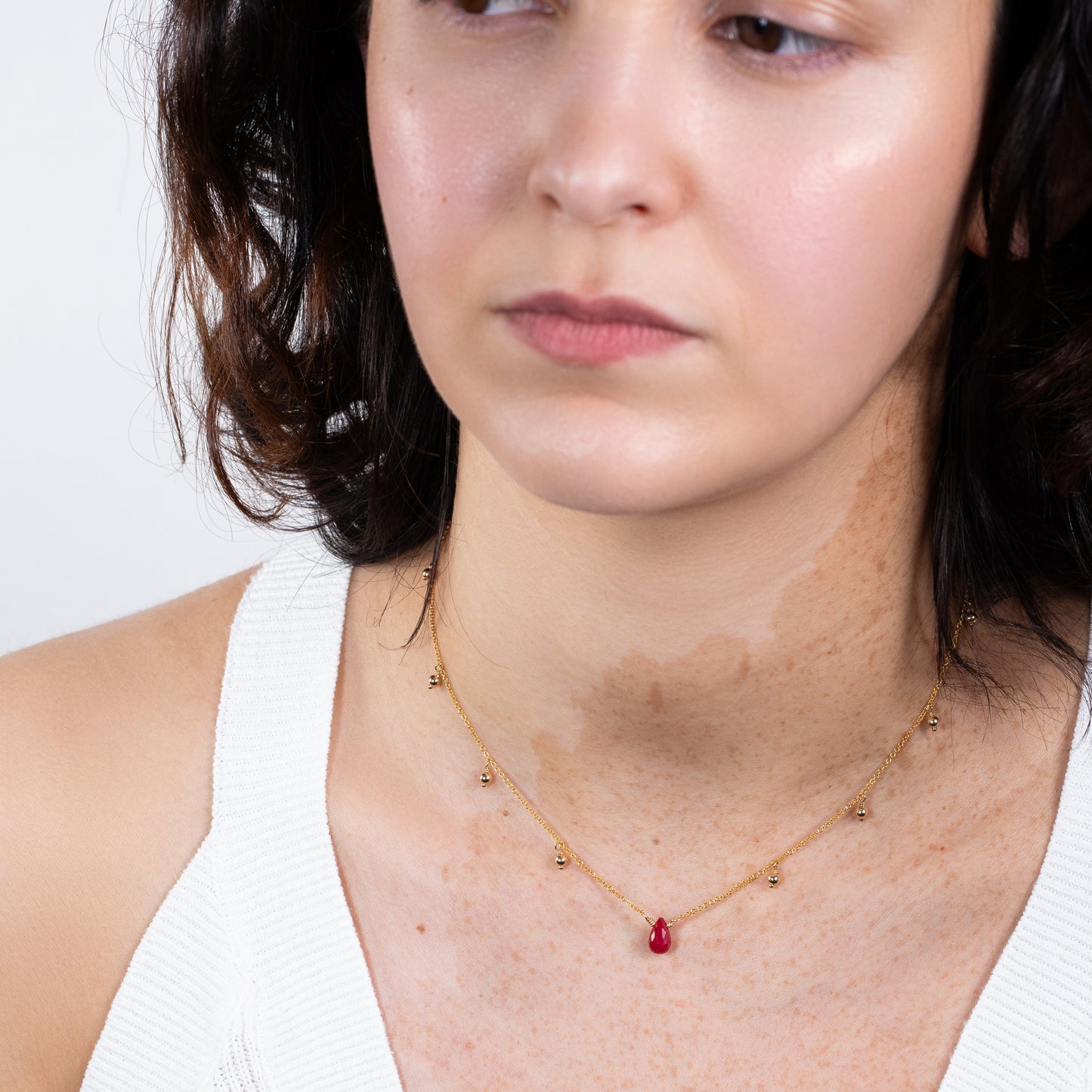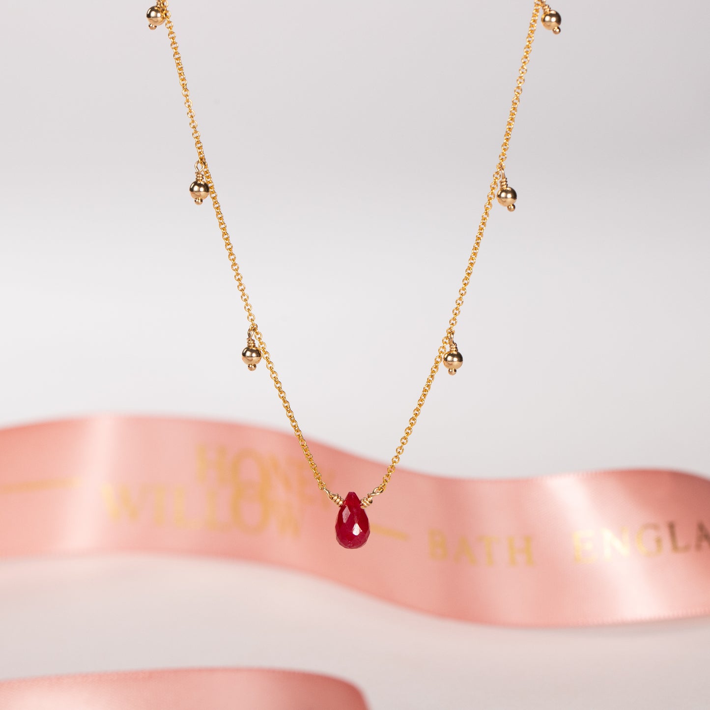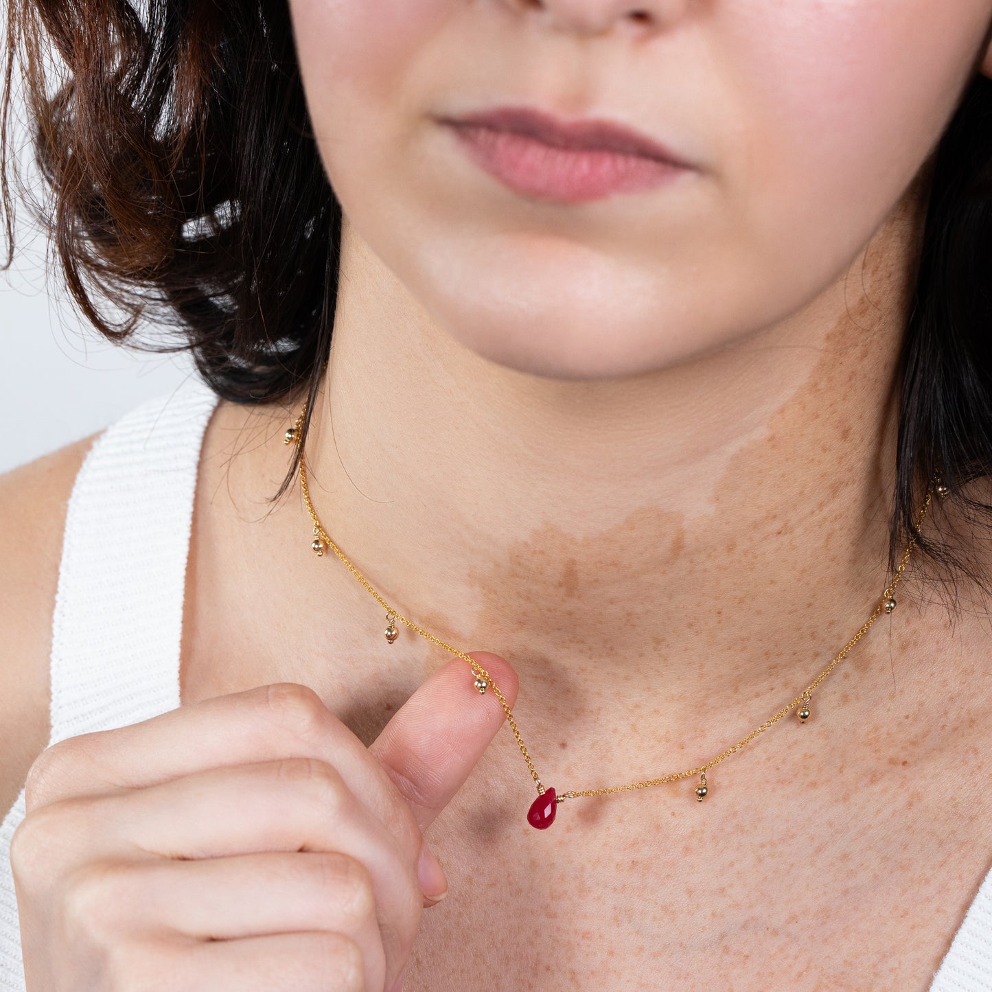 July Birthstone Briolette Choker Necklace - Ruby - Silver & Gold