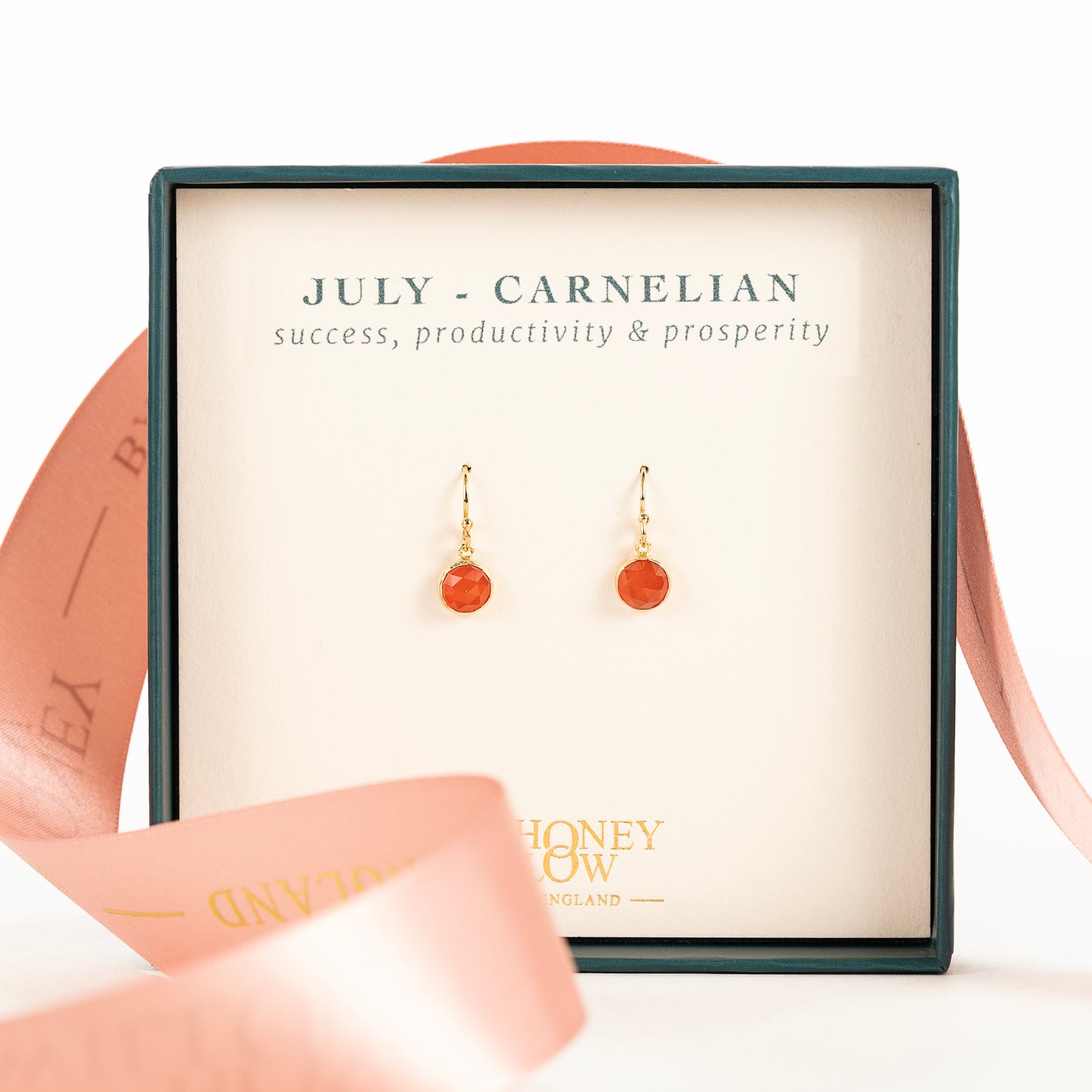 July Birthstone Drop Earrings - Carnelian - Silver & Gold
