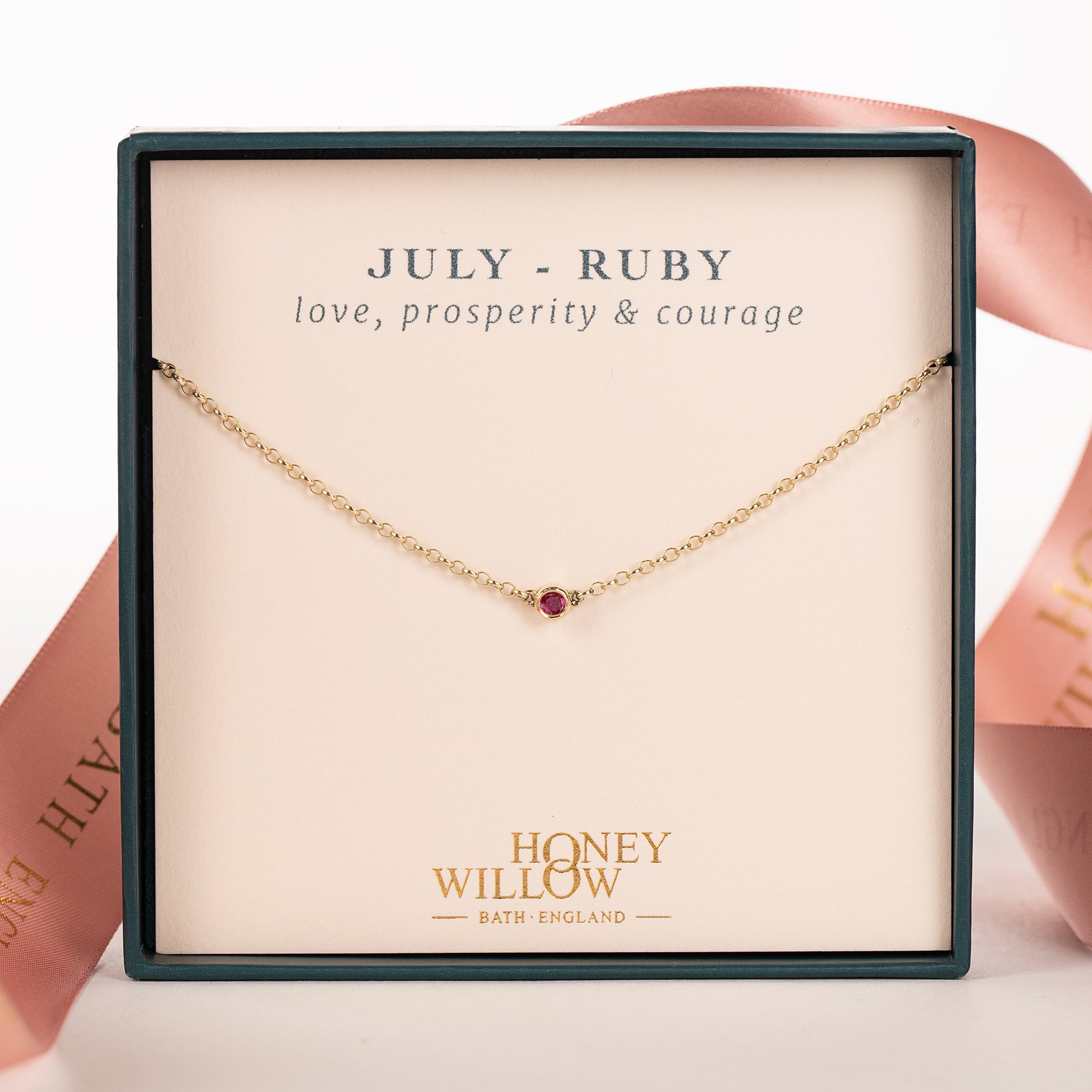 July Birthstone Necklace - Single Ruby Solitaire - 9kt Gold