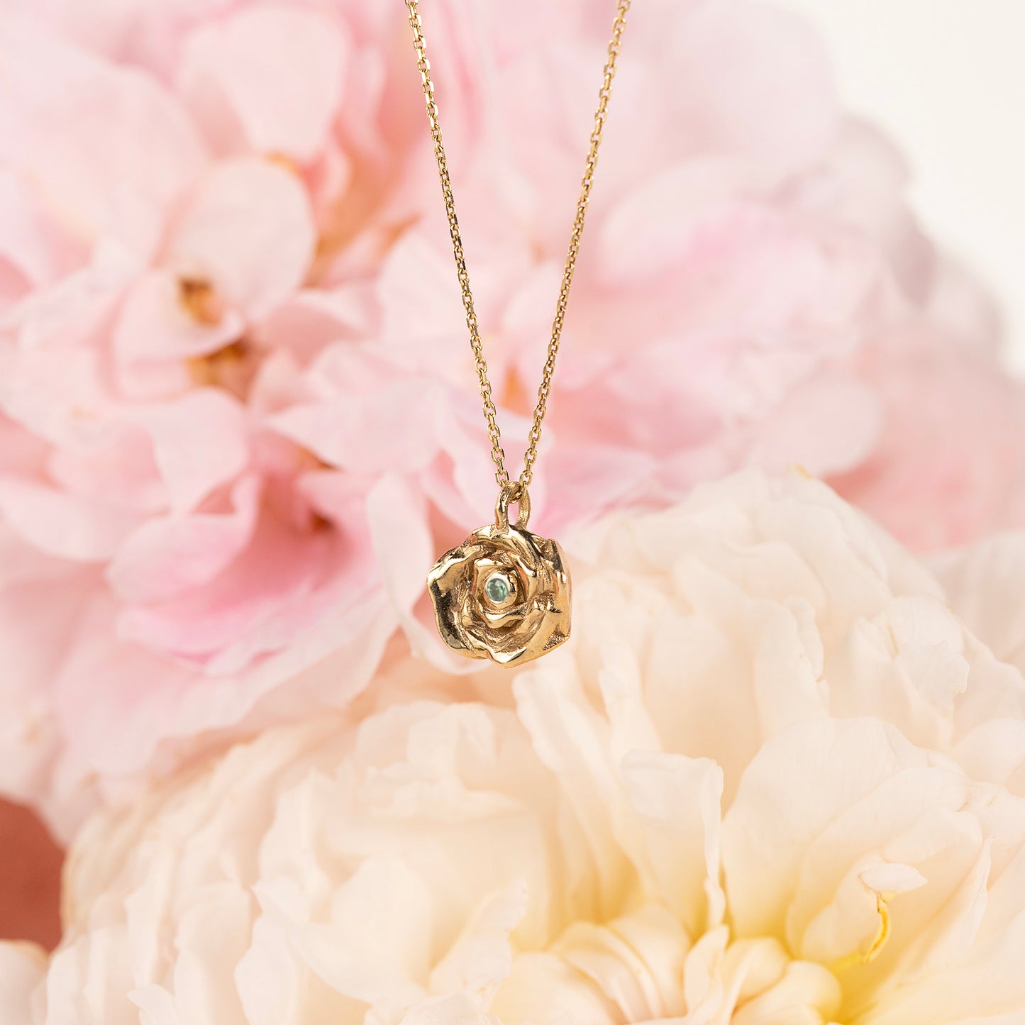 Celebrate her birth month with a dainty rose necklace, made with recycled 9kt gold and set with a tiny alexandrite.