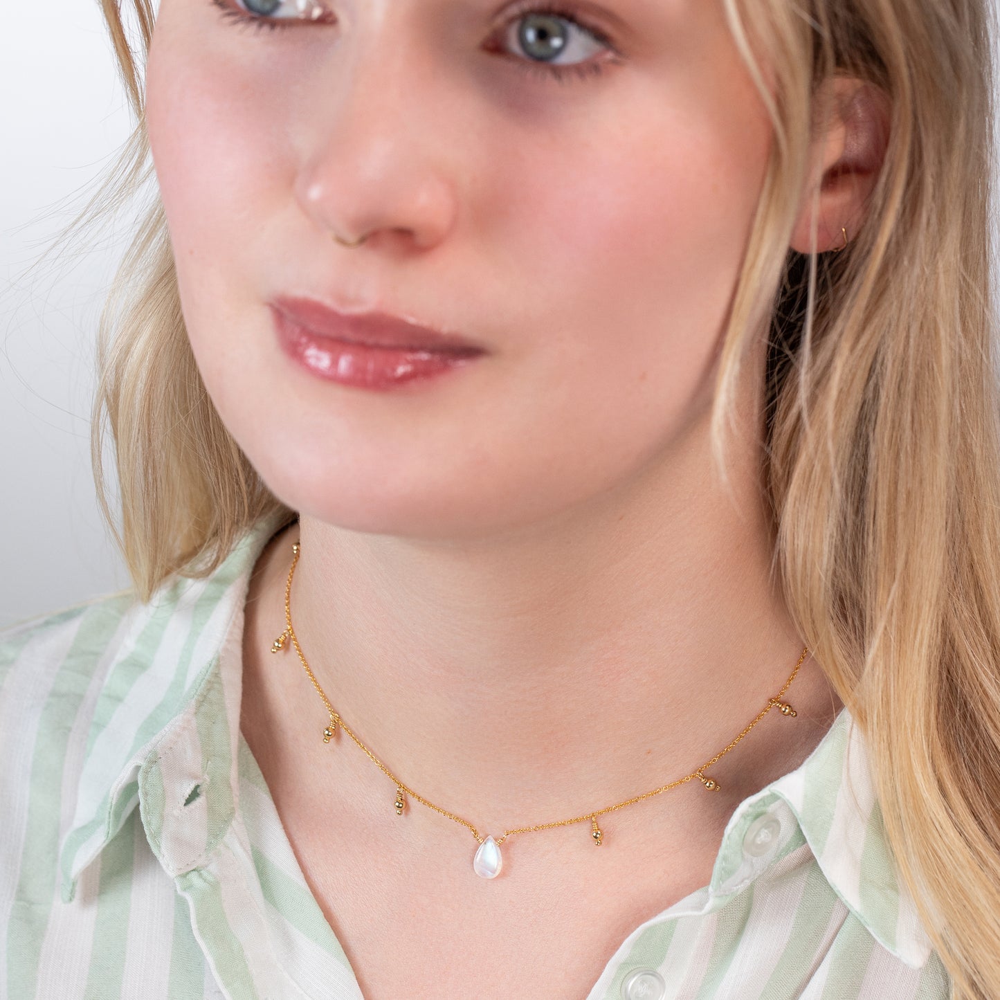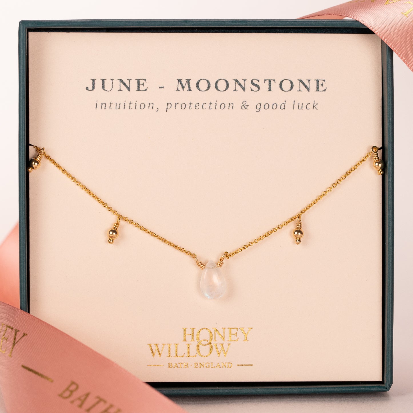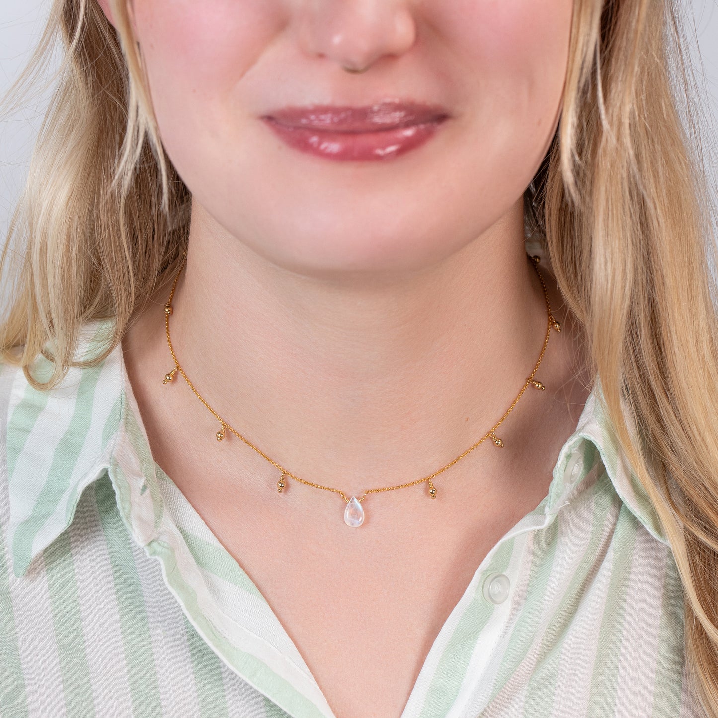 June Birthstone Briolette Choker Necklace - Moonstone - Silver & Gold