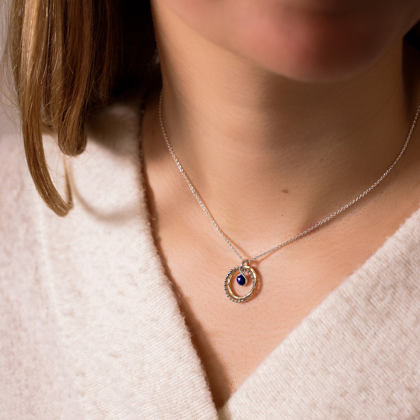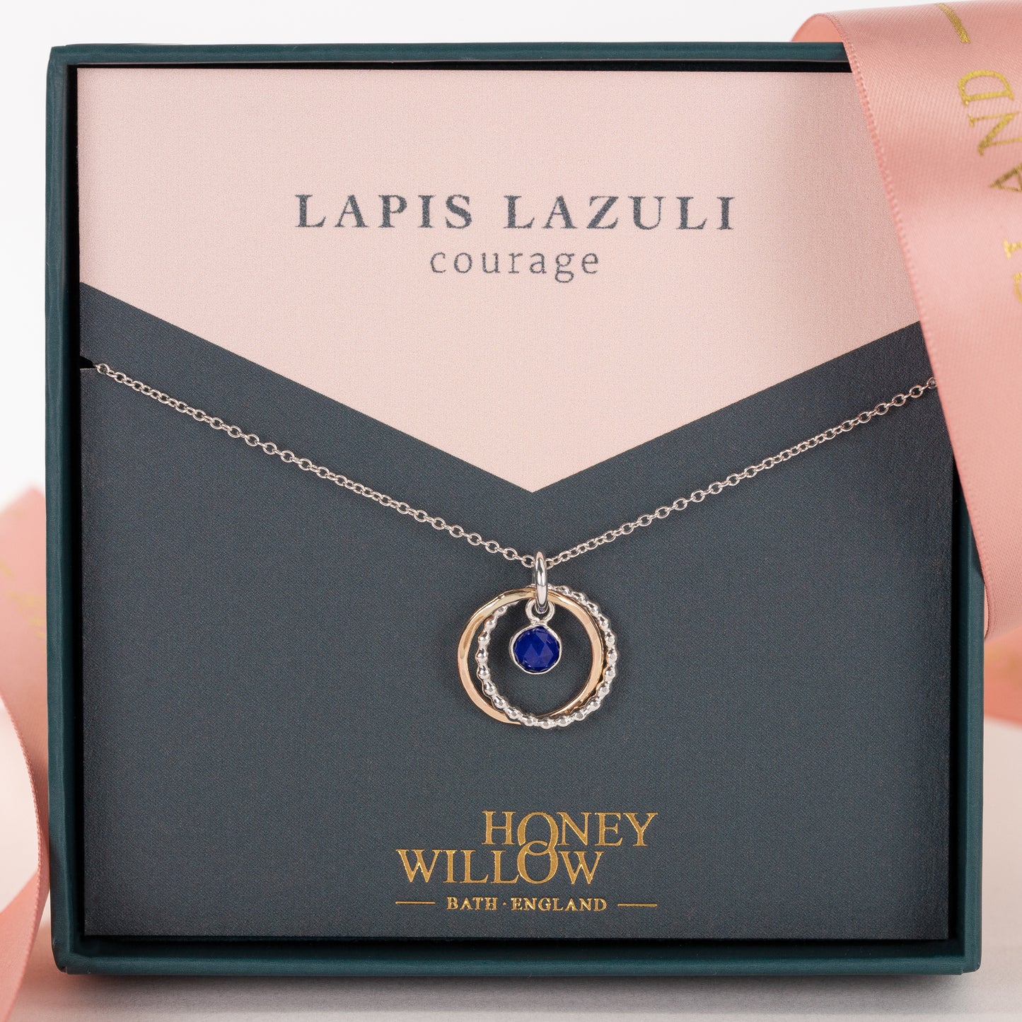 Celebrate and inspire her with a meaningful double link necklace, handmade for her with lapis lazuli, which symbolises courage.