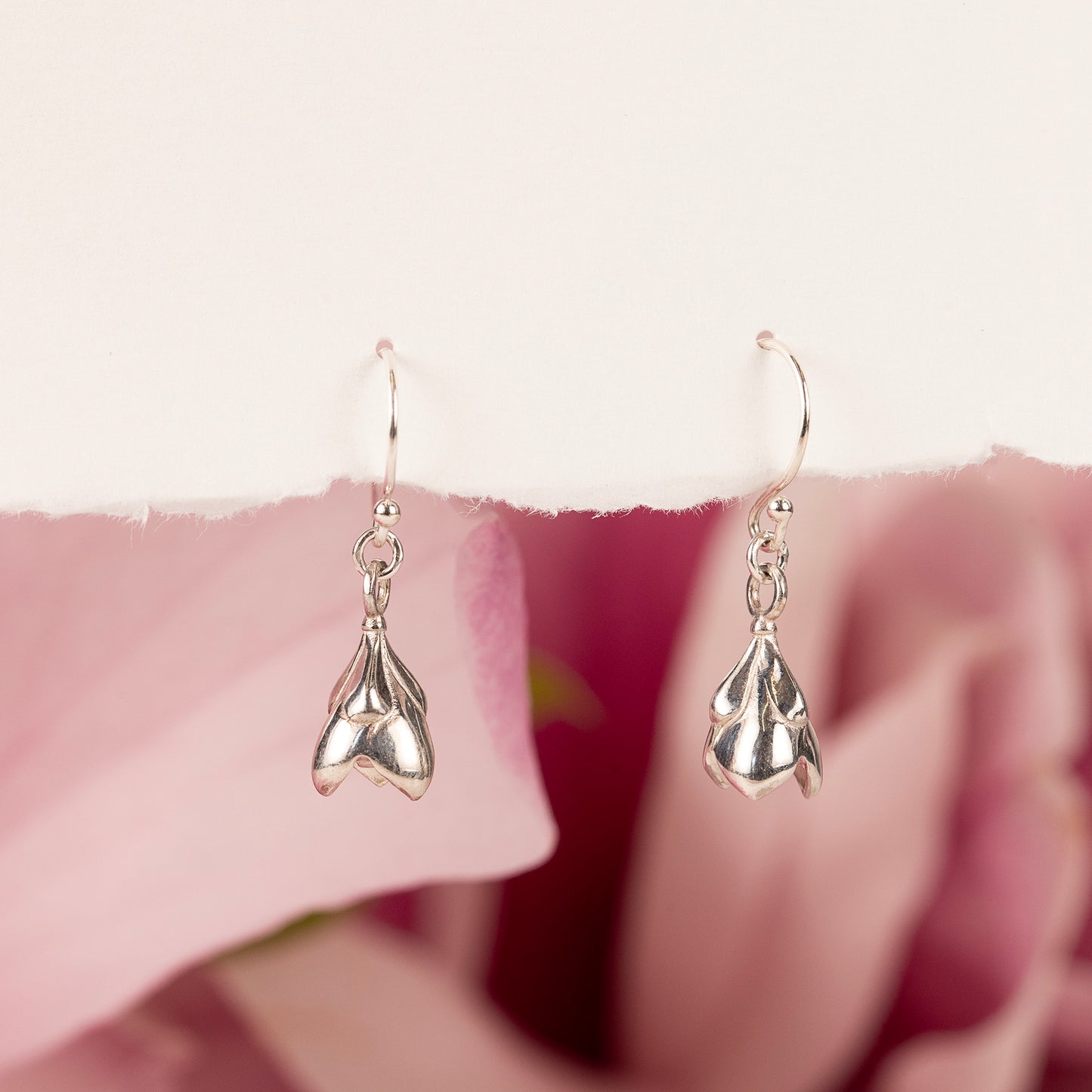 The magnolia earrings are 1.5cm in drop and is made with recycled silver.