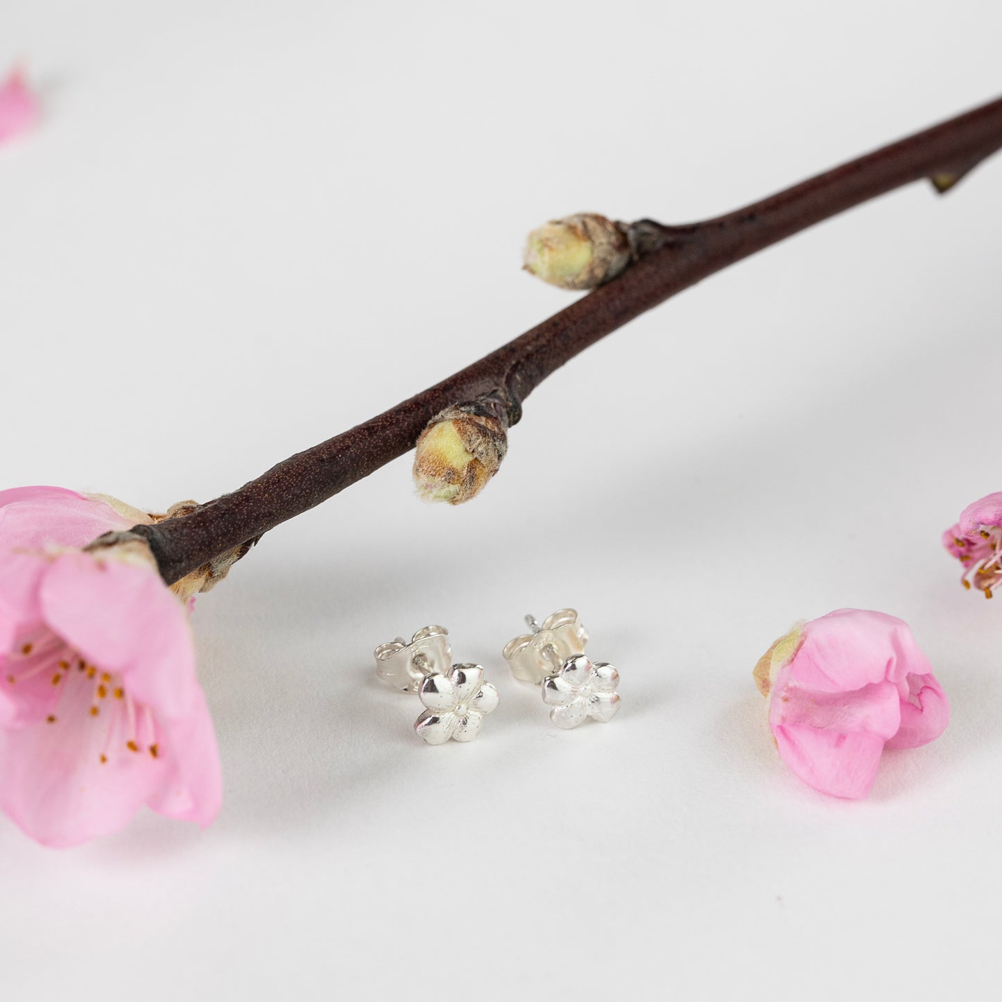 Celebrate her birth month with dainty cherry blossom earrings, made with recycled silver.