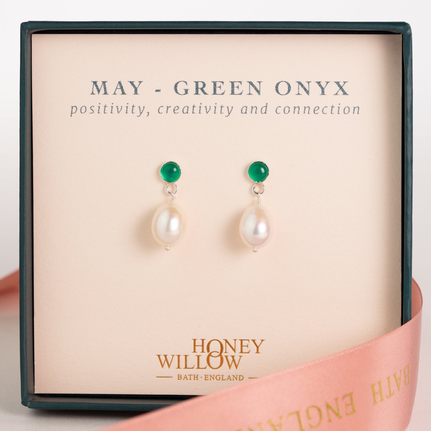 May Birthstone Earrings - Green onyx