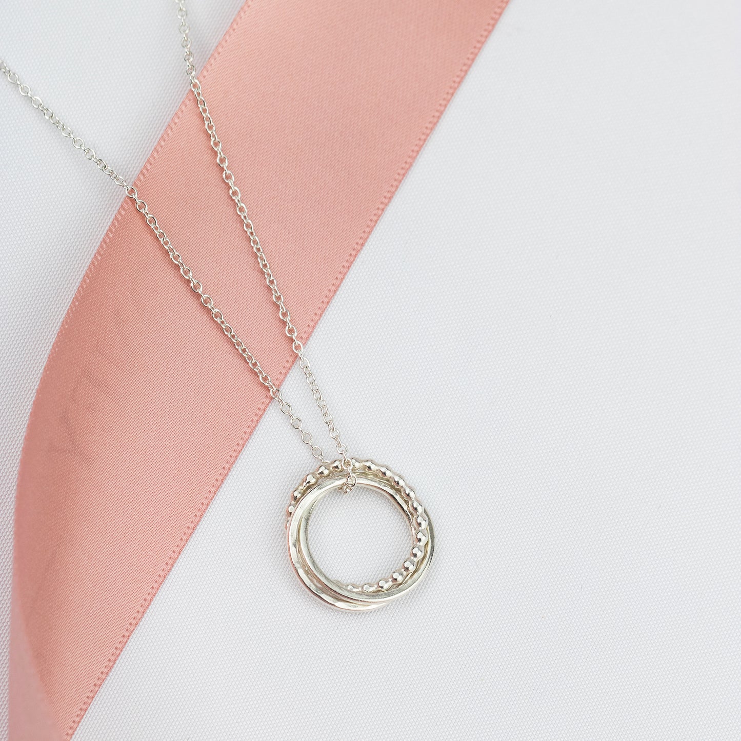 Circles symbolise infinite love, strength, protection and unity.  This necklace is made with three links, symbolising that the three of you are linked for a lifetime.