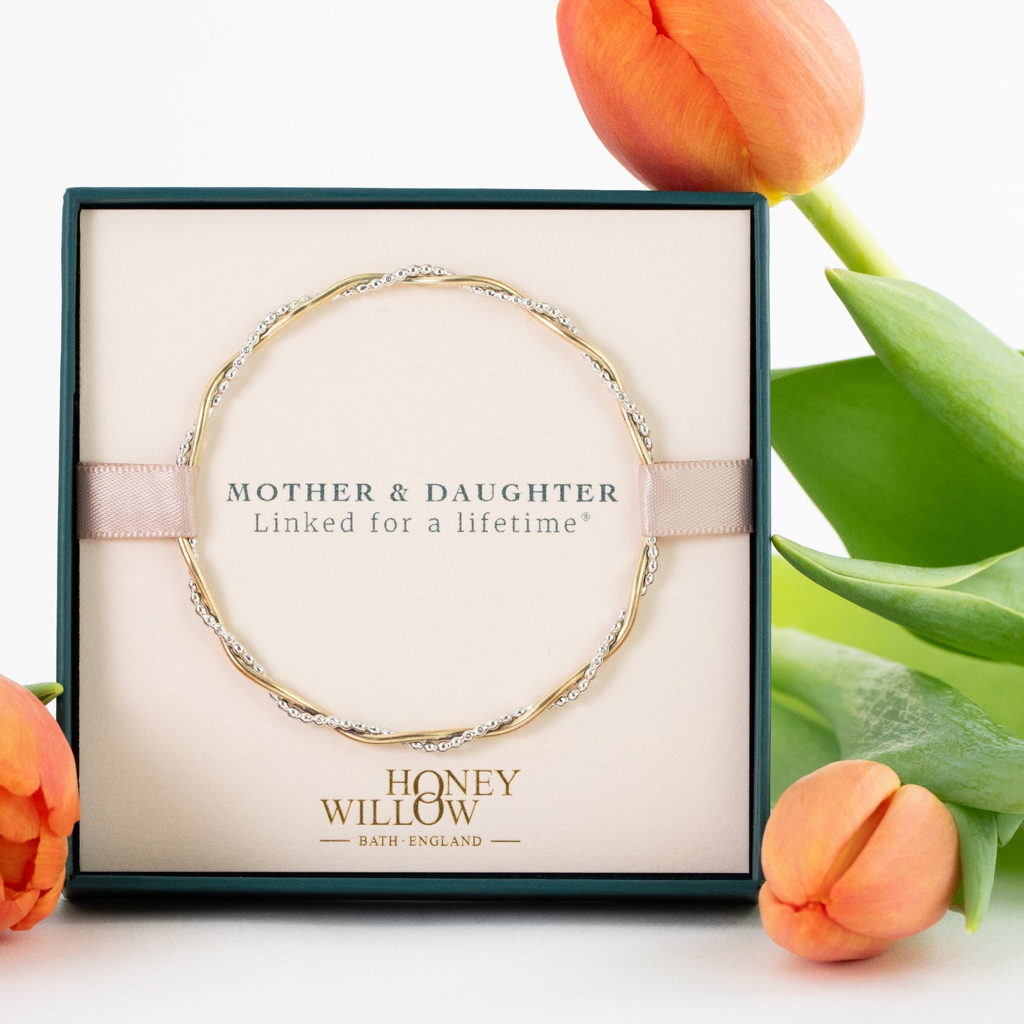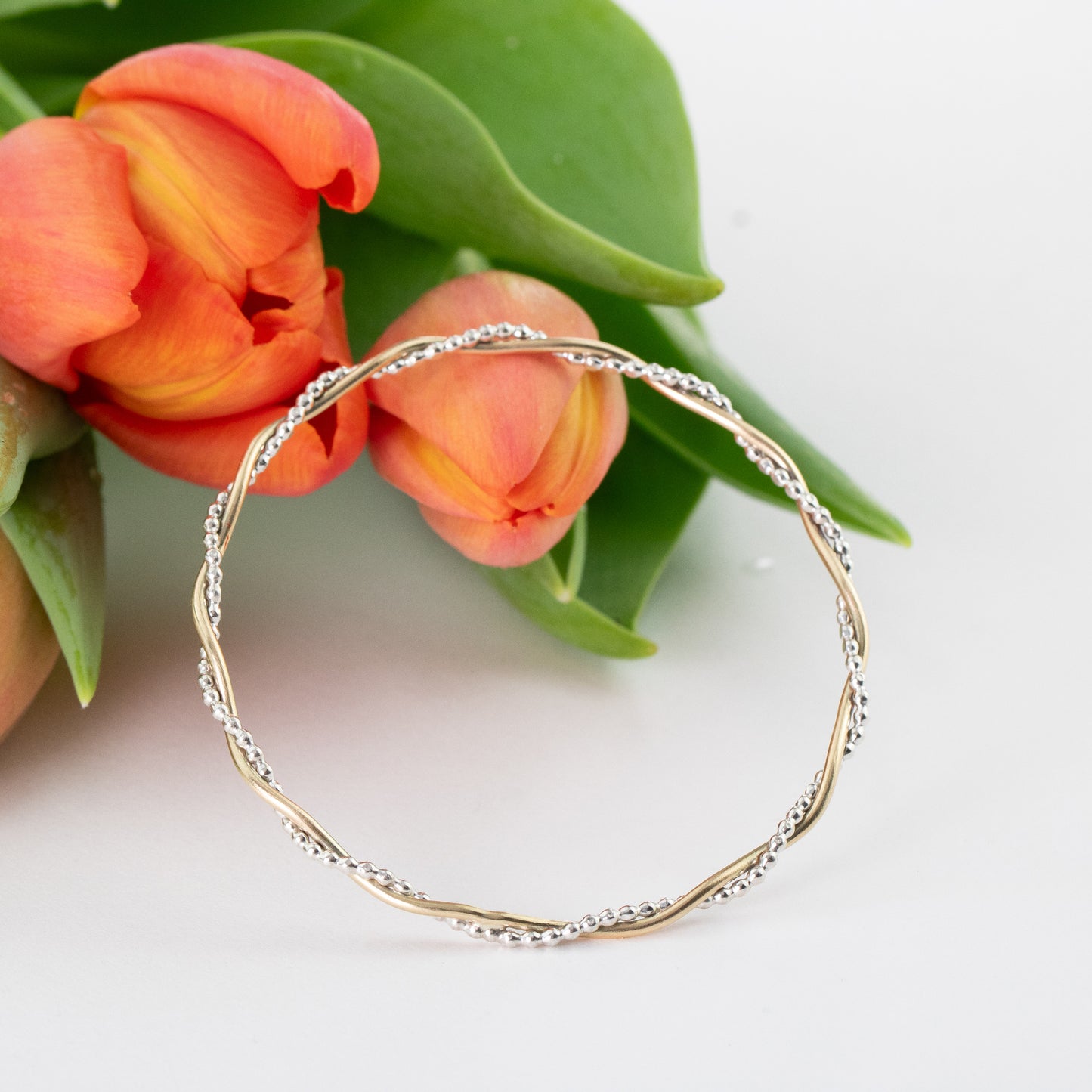 Mother & Daughter Jewellery - Entwined Bangle - Silver & 9kt Gold