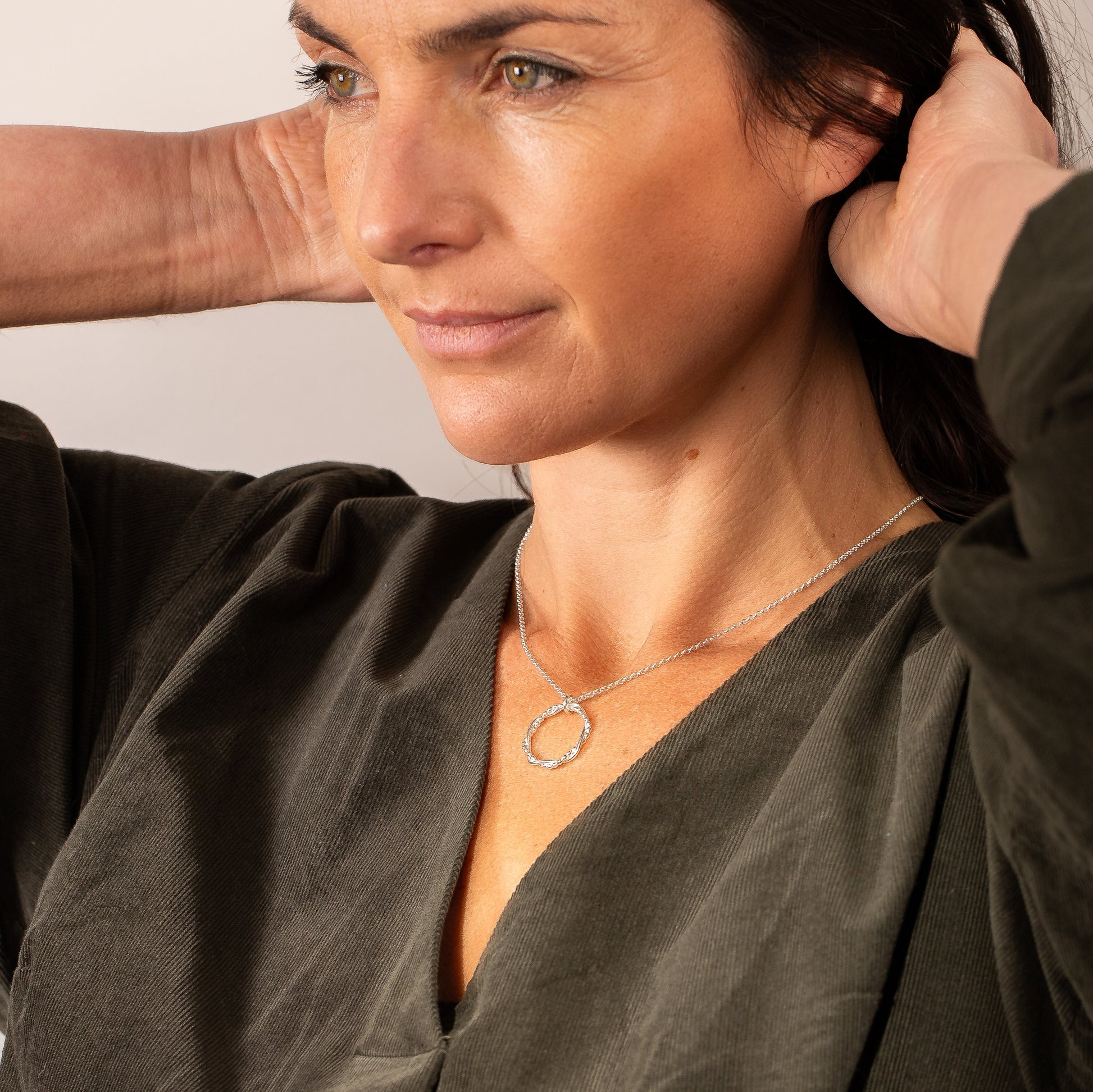 Celebrate your bond with an entwined silver halo necklace, handmade with two lengths of wire, twisted together and linked for a lifetime®.