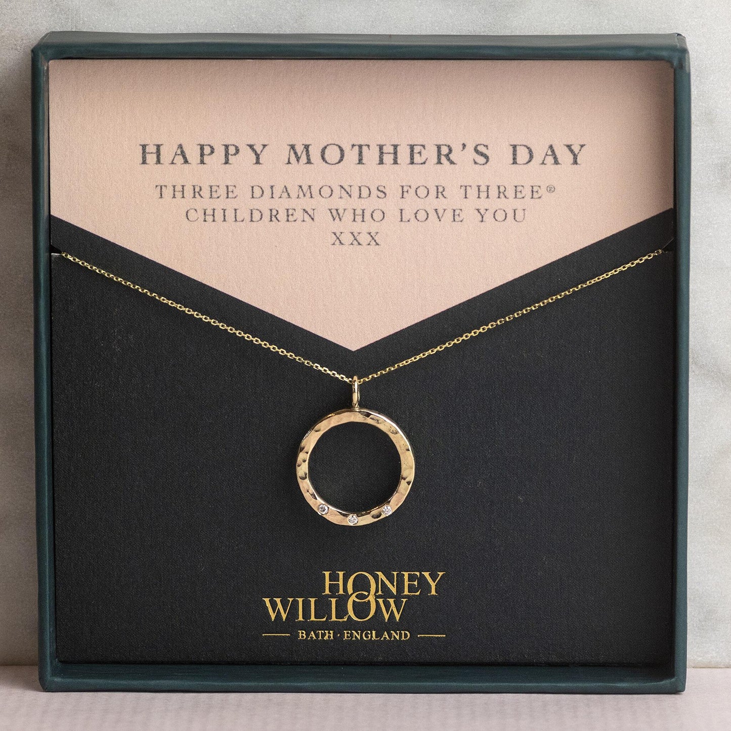 Give your loved one the original three diamonds for three® loved ones necklace, designed and handmade in Bath, England.