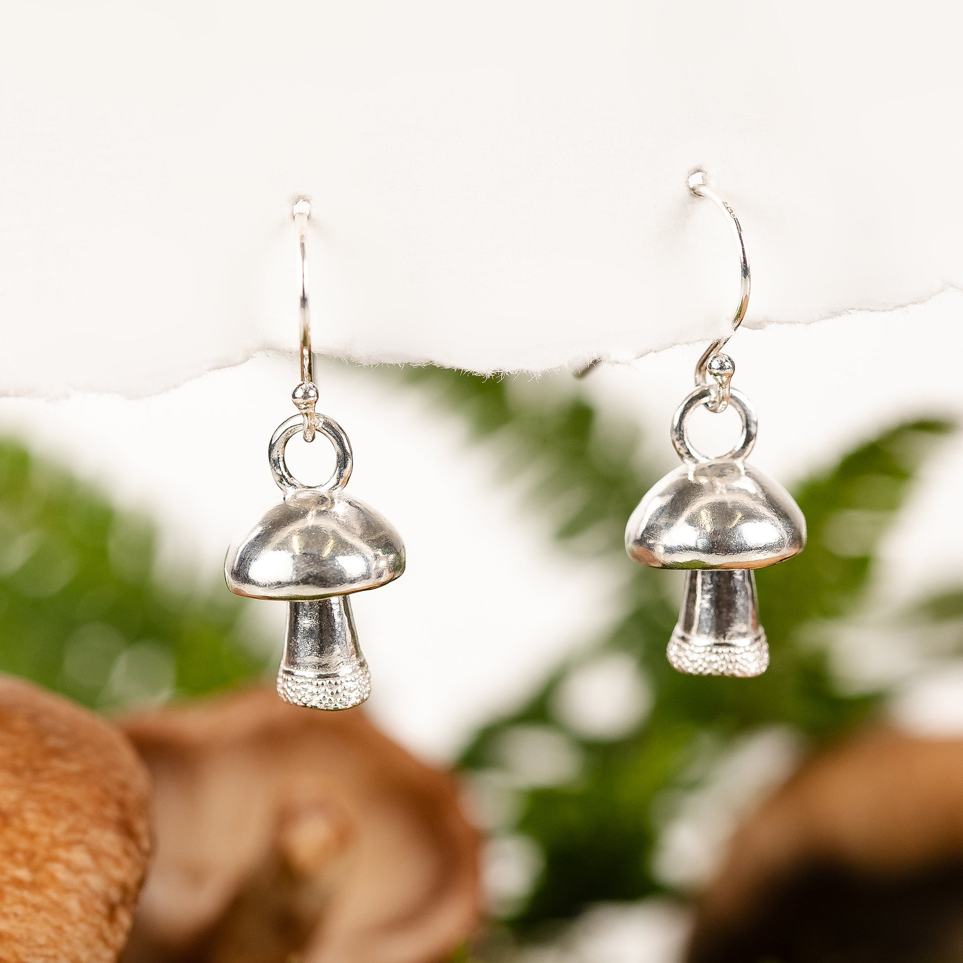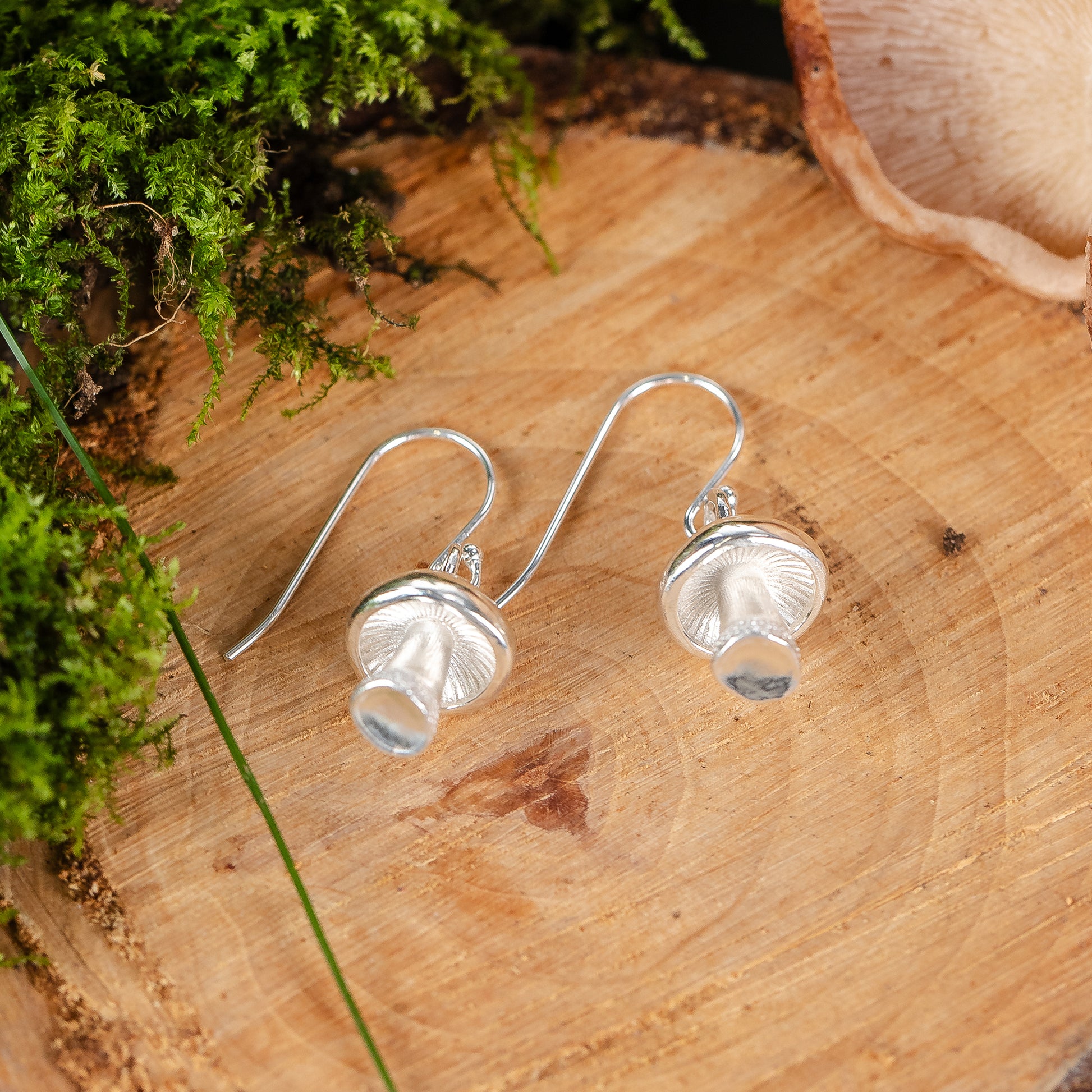 The mushroom earrings are 1.5cm in drop and is made with recycled silver.