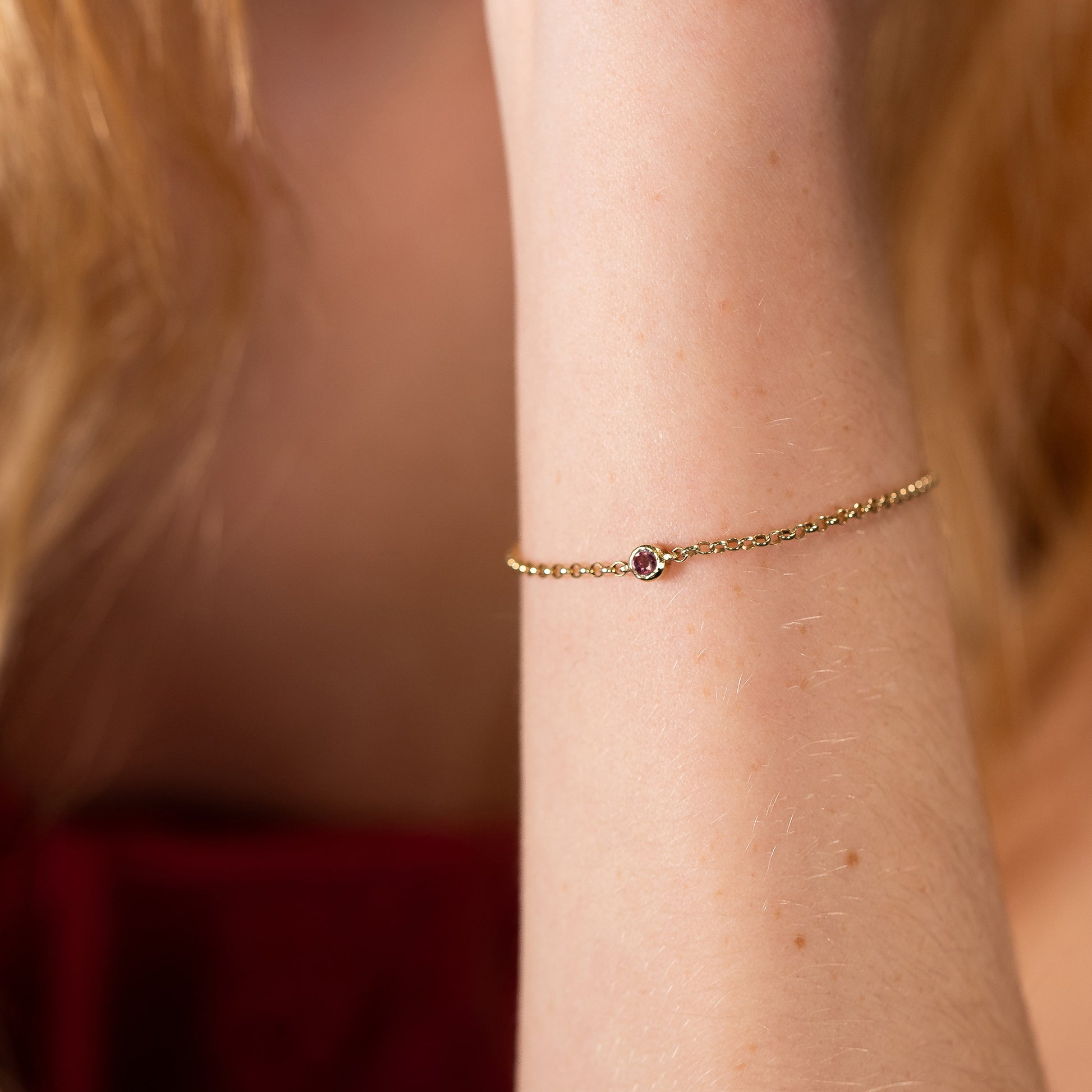 October Birthstone Bracelet - Single Pink Tourmaline Solitaire - 9kt gold