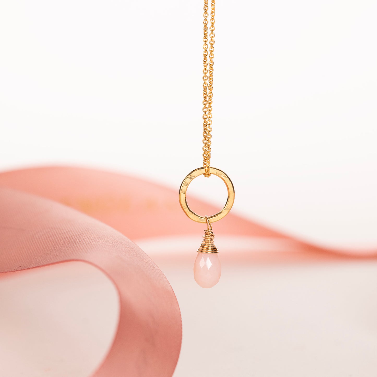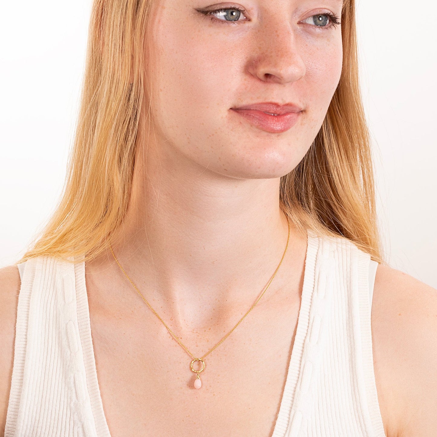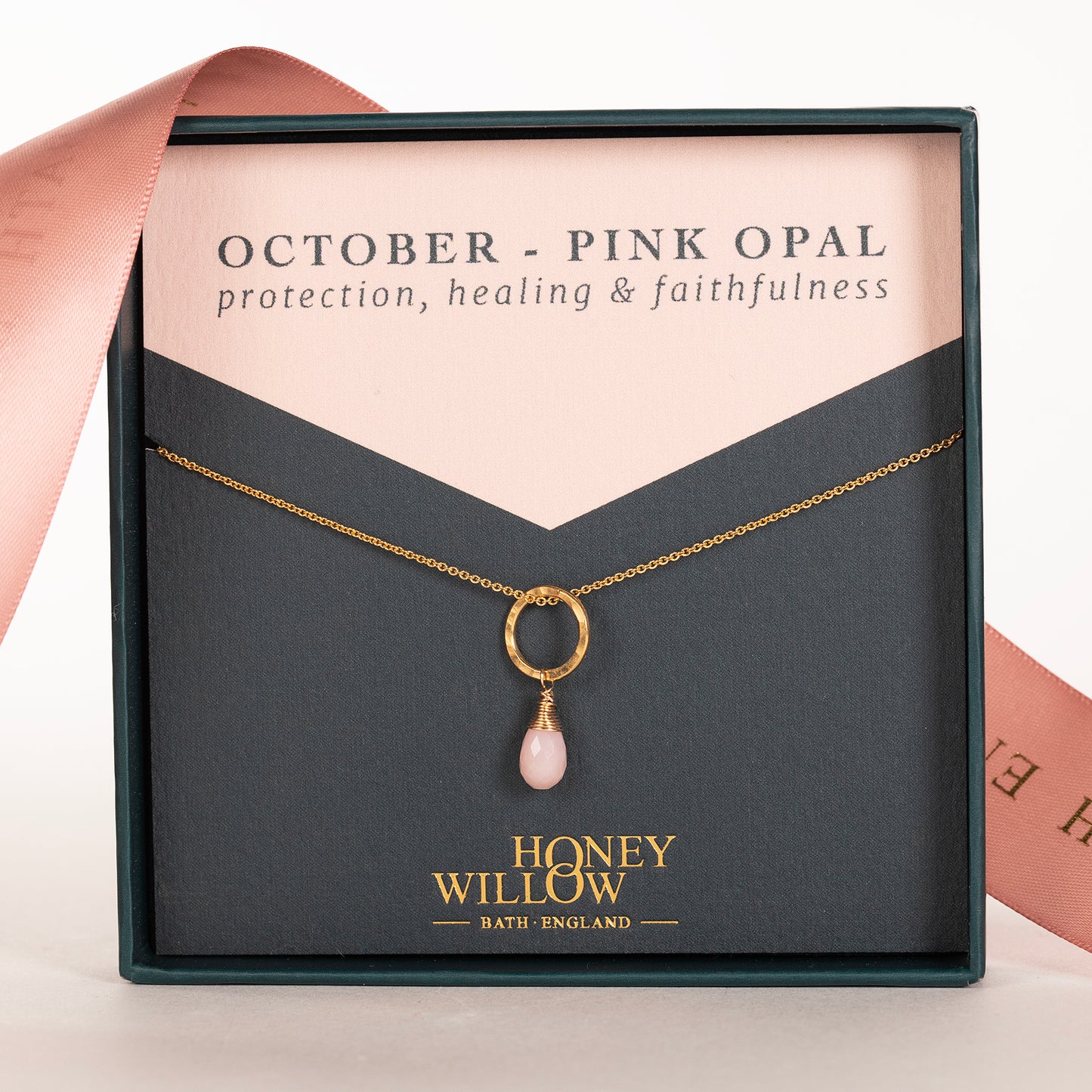 Celebrate her October birthday with a dainty pink opal circle necklace.