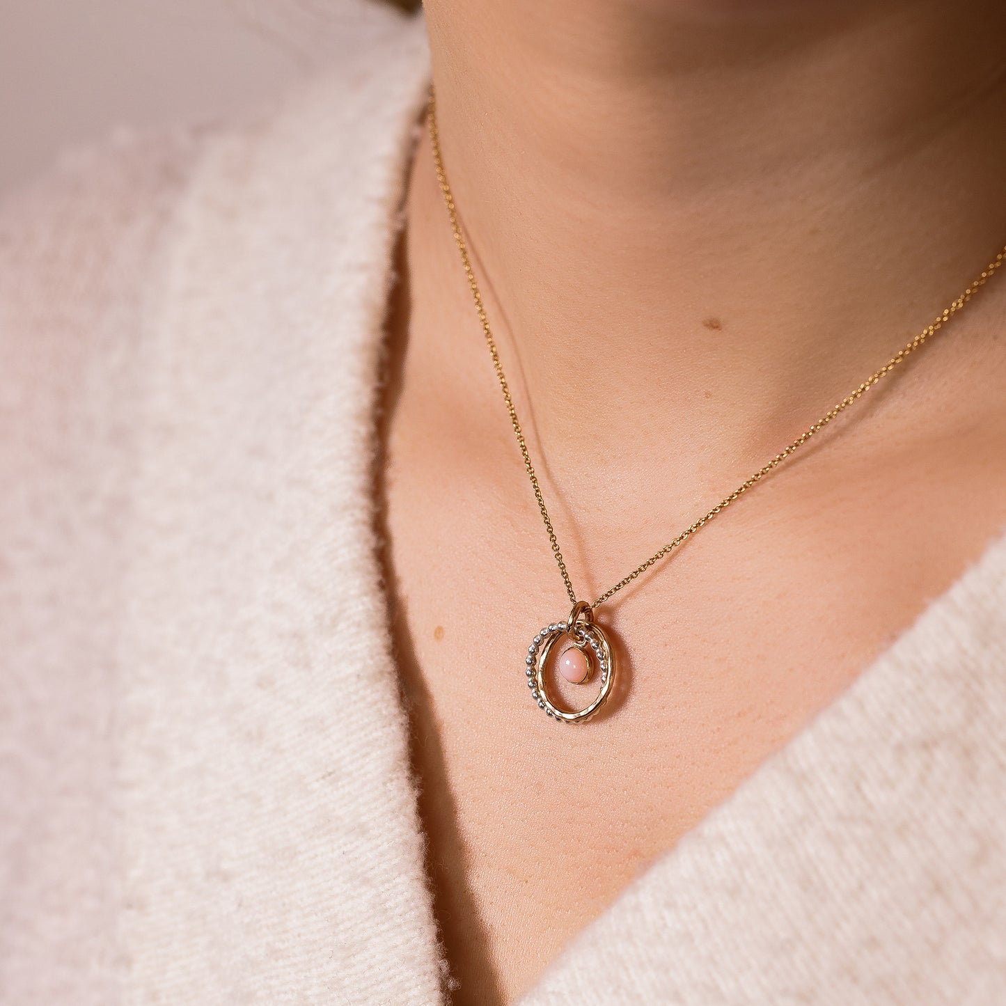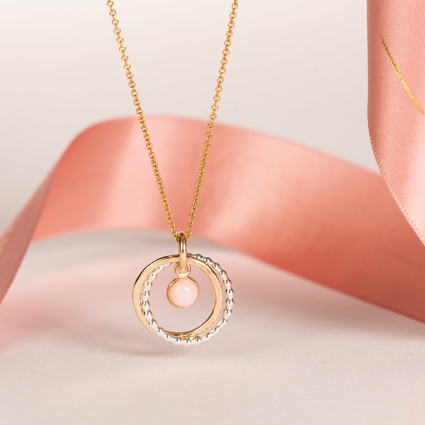 October Birthstone Double Link Necklace - Pink Opal - Silver & Gold