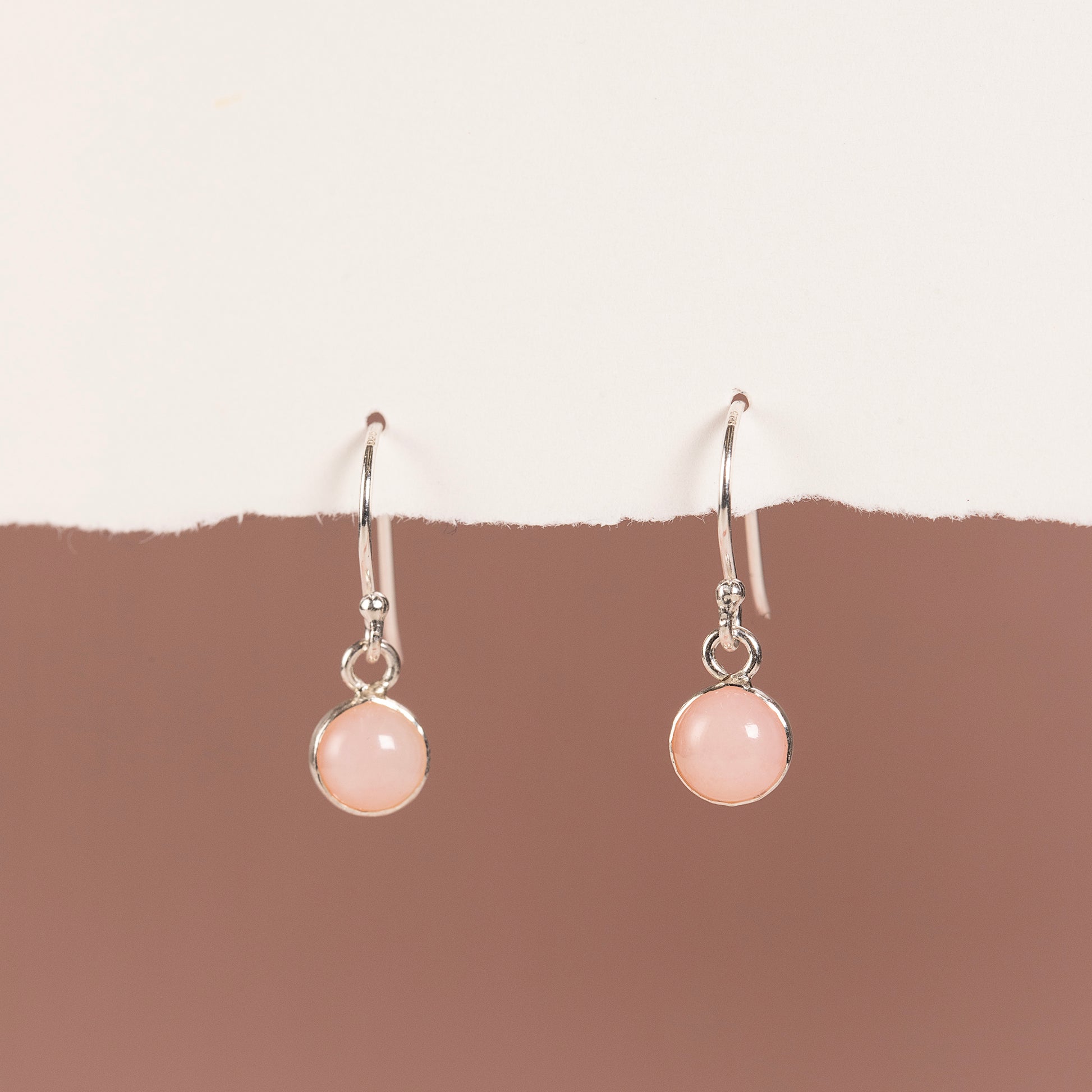 October Birthstone Drop Earrings - Pink Opal - Silver & Gold