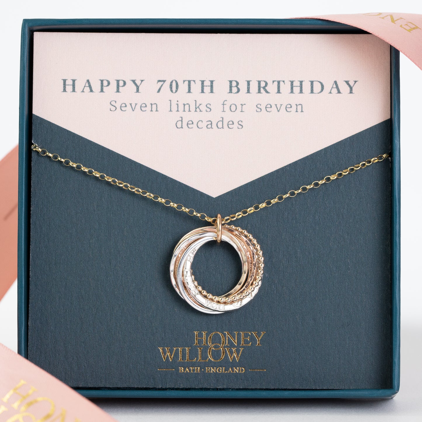 Personalised 70th Birthday Necklace - The Original 7 Links for 7 Decades Necklace - 9kt Gold, Rose Gold, Silver