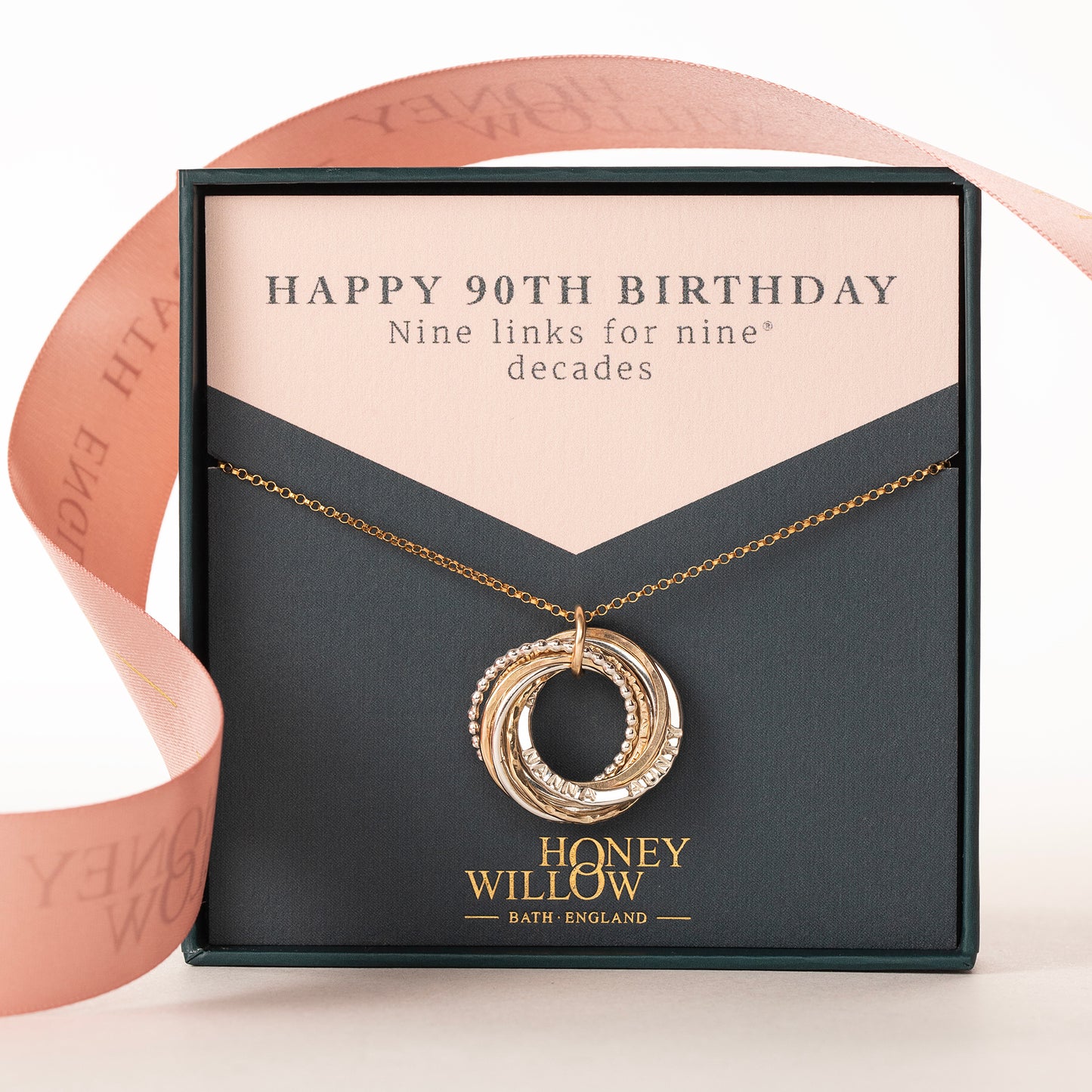 Celebrate her 90th birthday with a personalised nine links for nine® decades necklace.