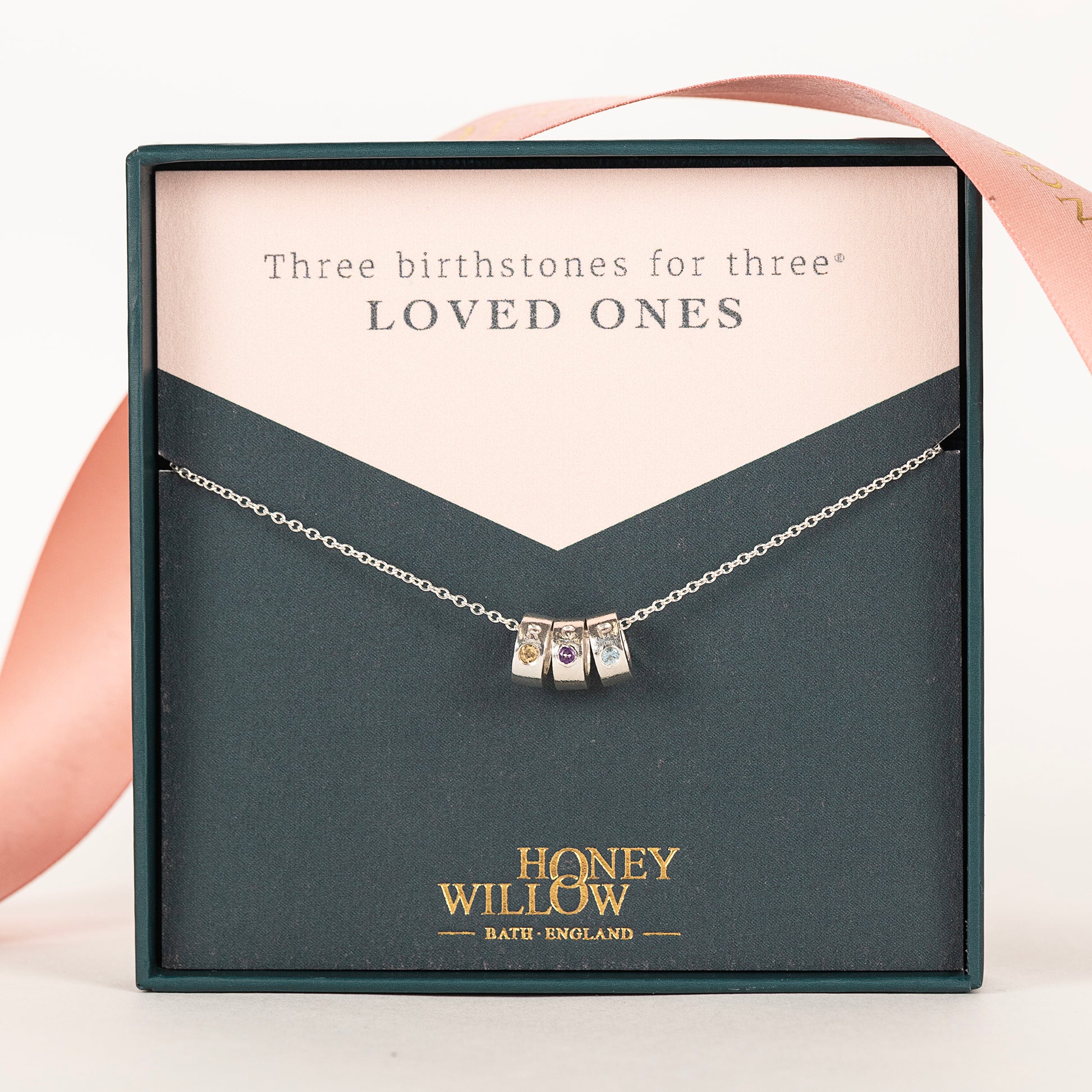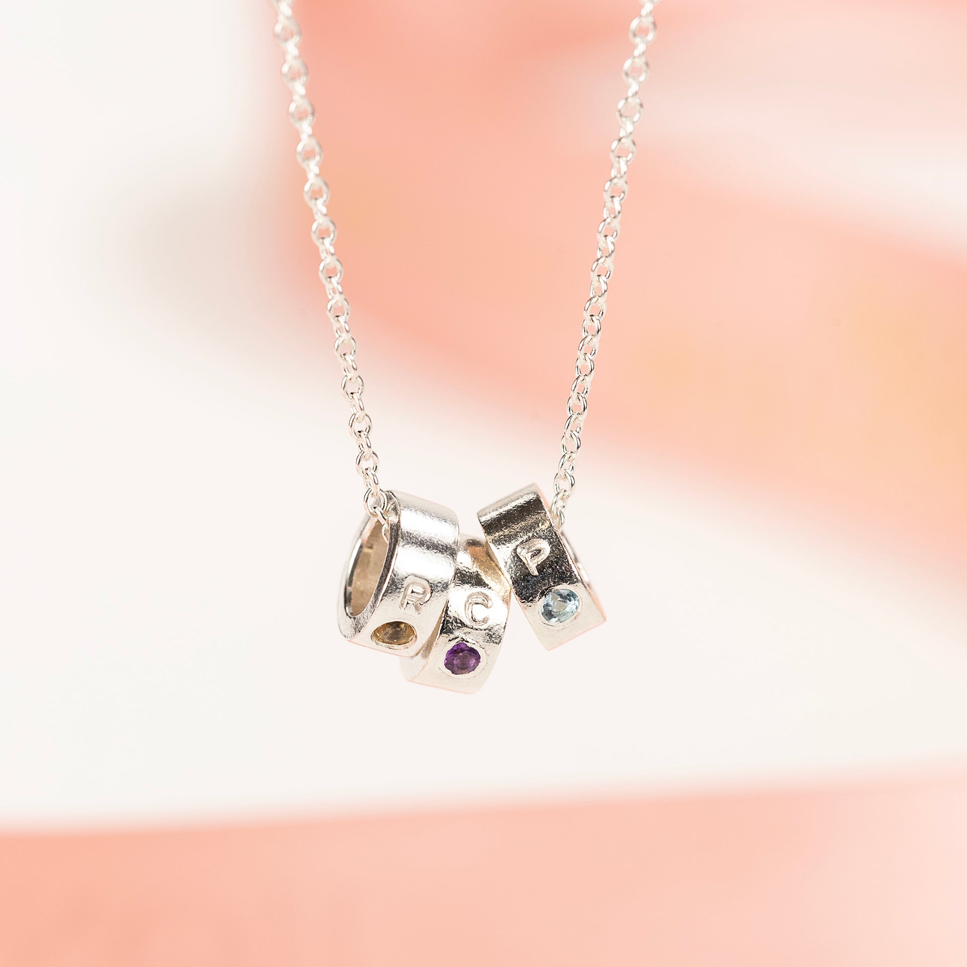 Celebrate three loved ones, with a personalised tiny links necklace, each link stamped with an initial and set with a birthstone.