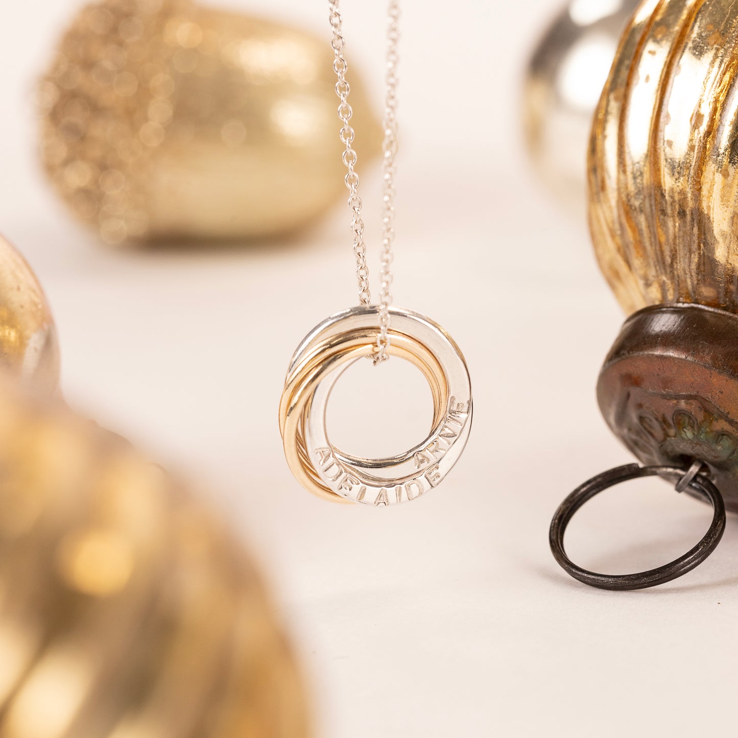 Personalised Family Name Necklace - 4 Links for 4 Loved Ones - 9kt Gold & Petite Silver