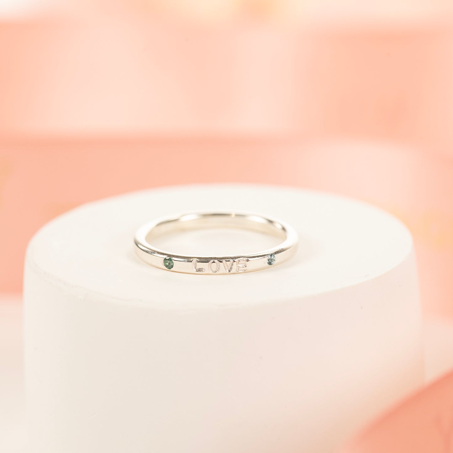 Personalised Silver Ring with Two Birthstones