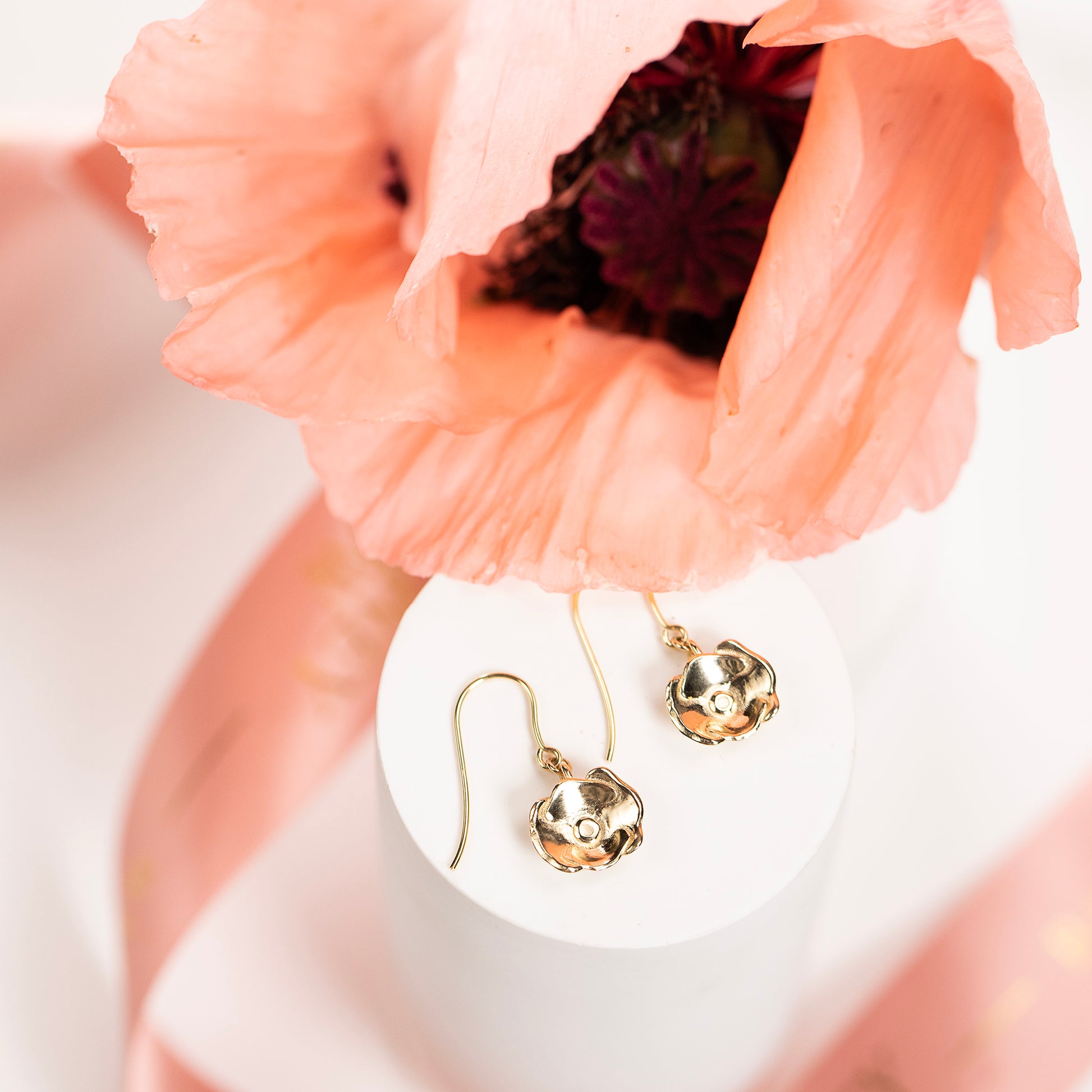 Poppy Flower Earrings - Remembrance - 9kt Gold