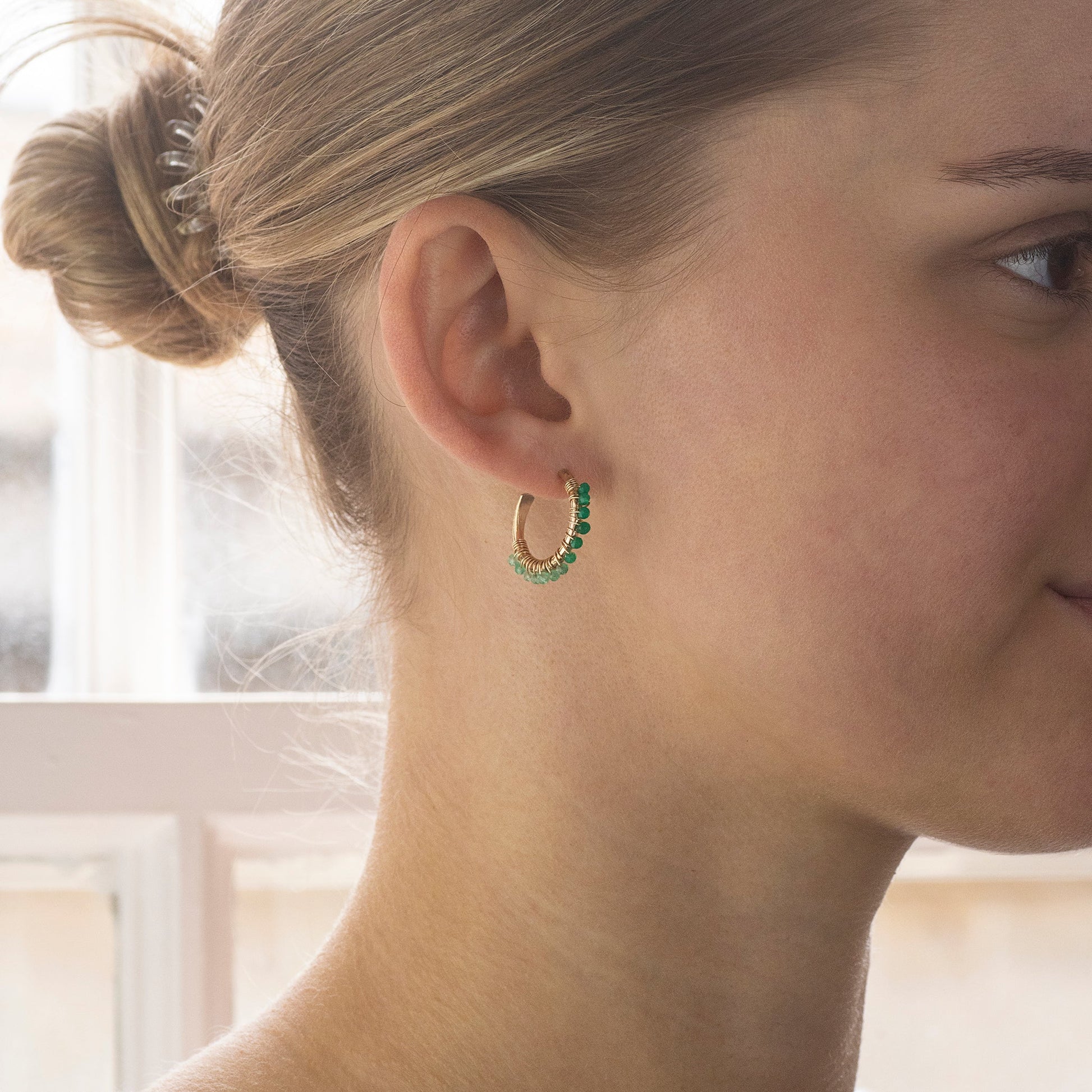 Give her a meaningful gift that celebrates and inspires her. These gemstone hoop earrings are handmade with either sterling silver or 14k gold-fill and tiny pyrite stones, which symbolise protection.