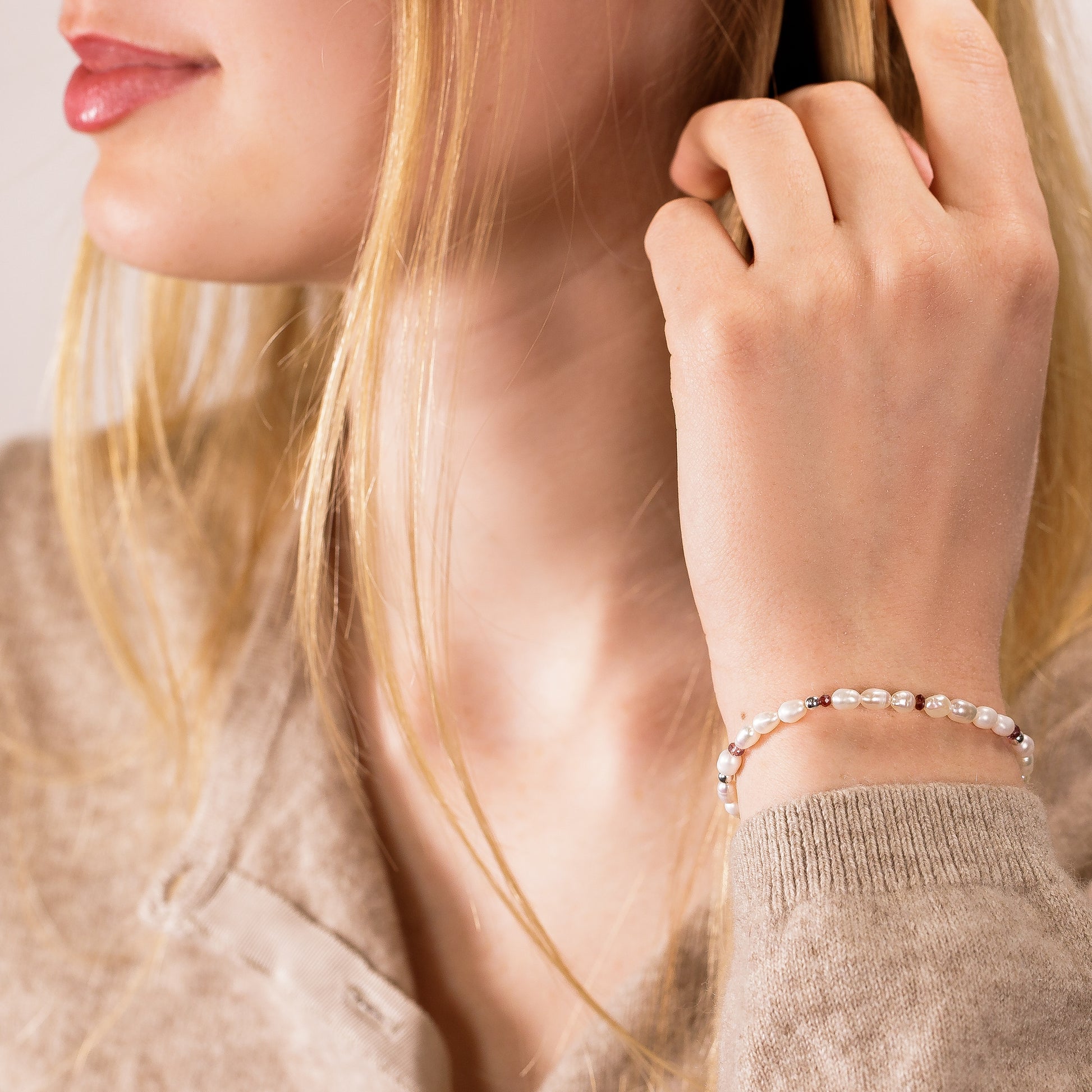 Celebrate and inspire her with a bracelet handmade with seed pearls and red spinel gemstones, which symbolise hope.