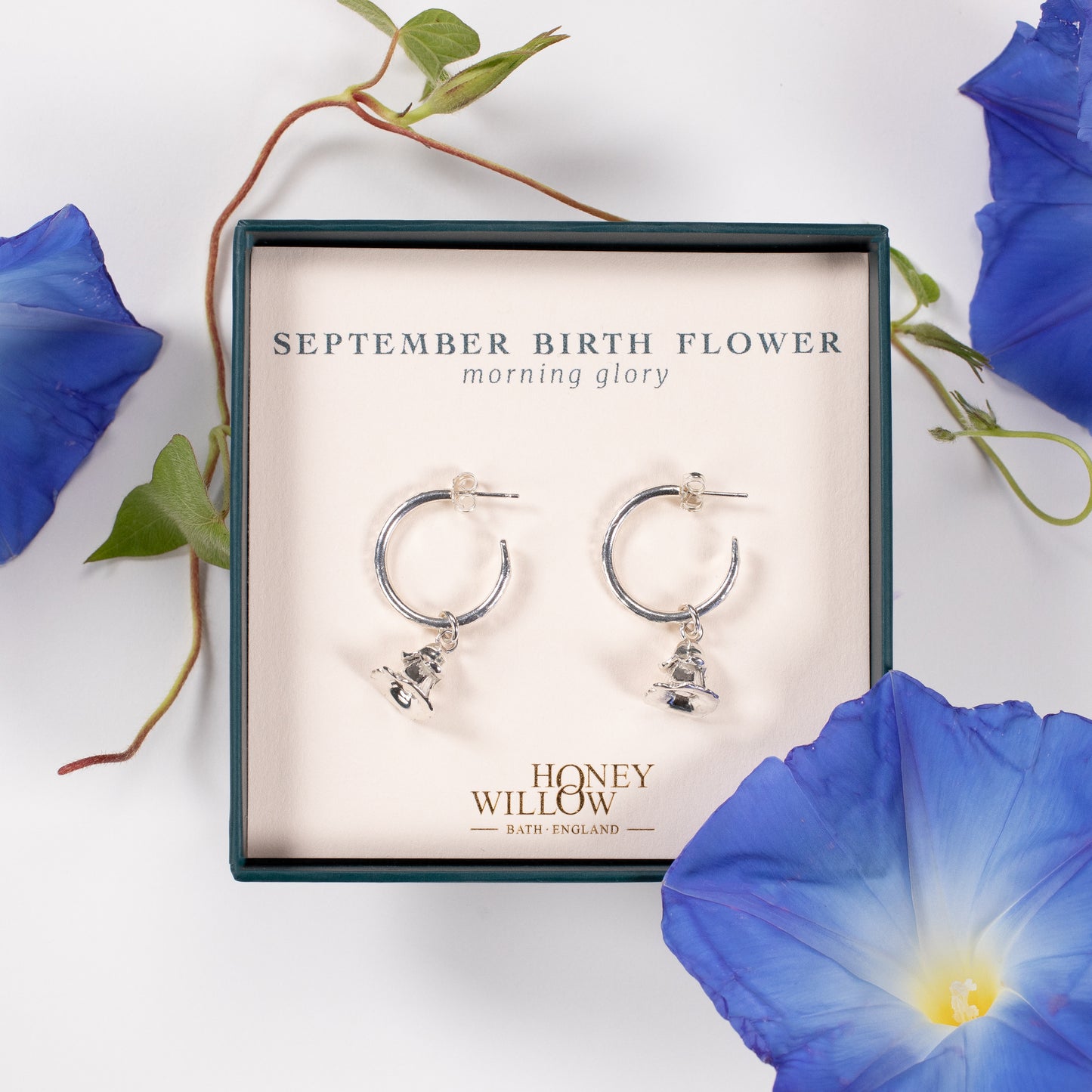 September Birth Flower Hoop Earrings - Morning Glory - Silver - 2cm