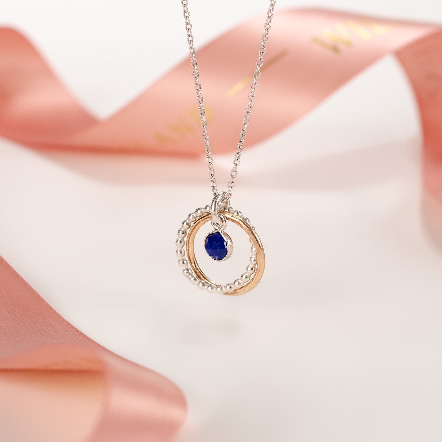 Celebrate her September birthday with a meaningful double link necklace handmade with lapis lazuli, which is a birthstone for September.