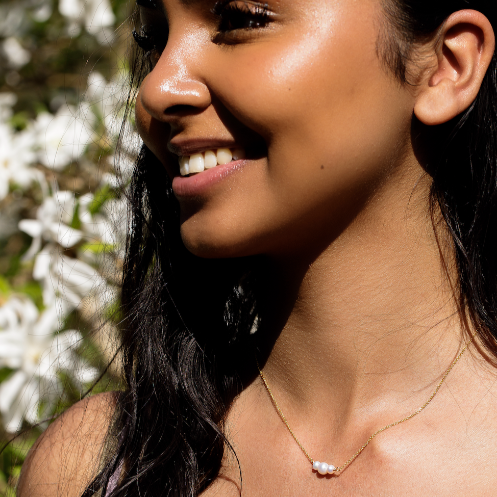 Thank her for being your bridesmaid with a dainty pearl trio necklace.