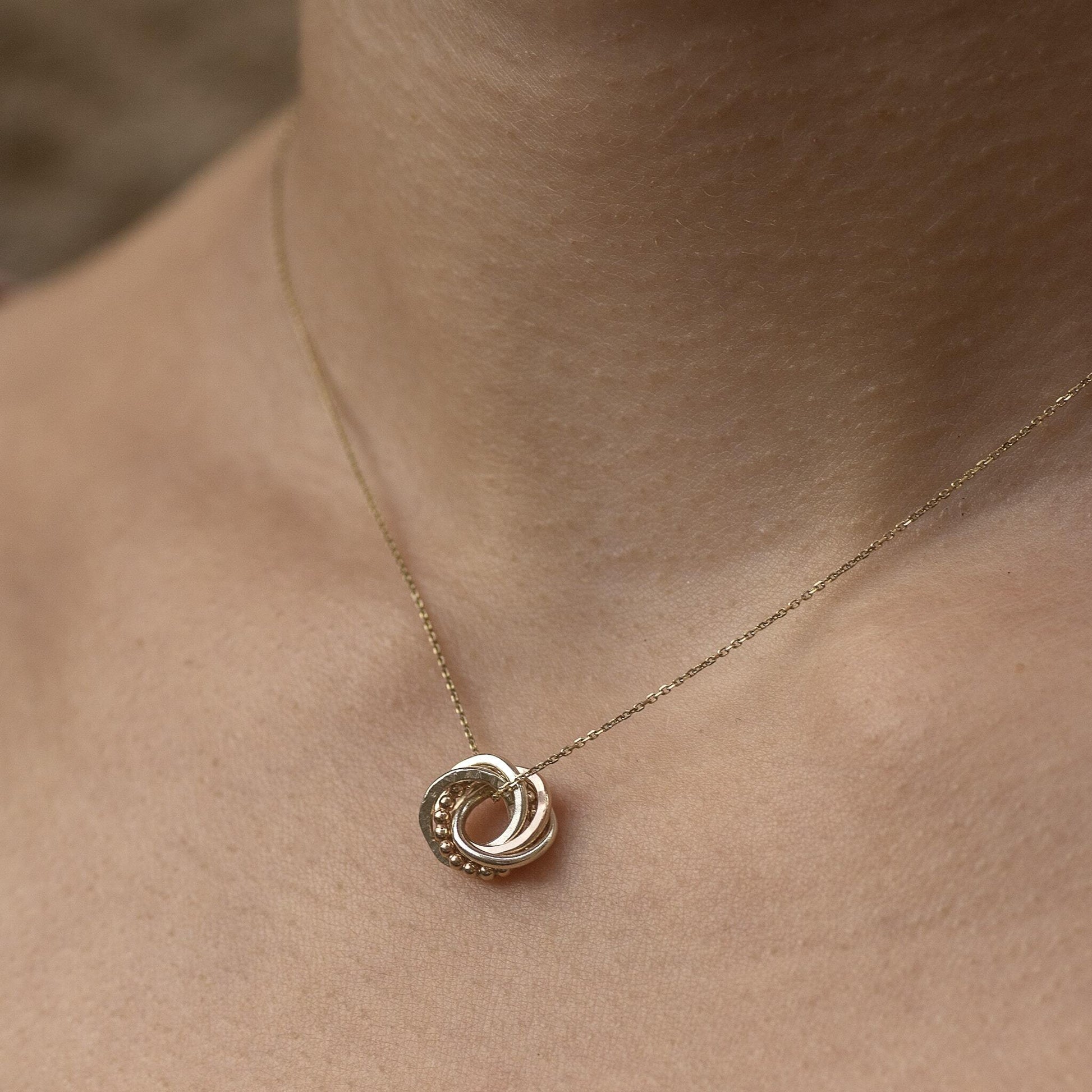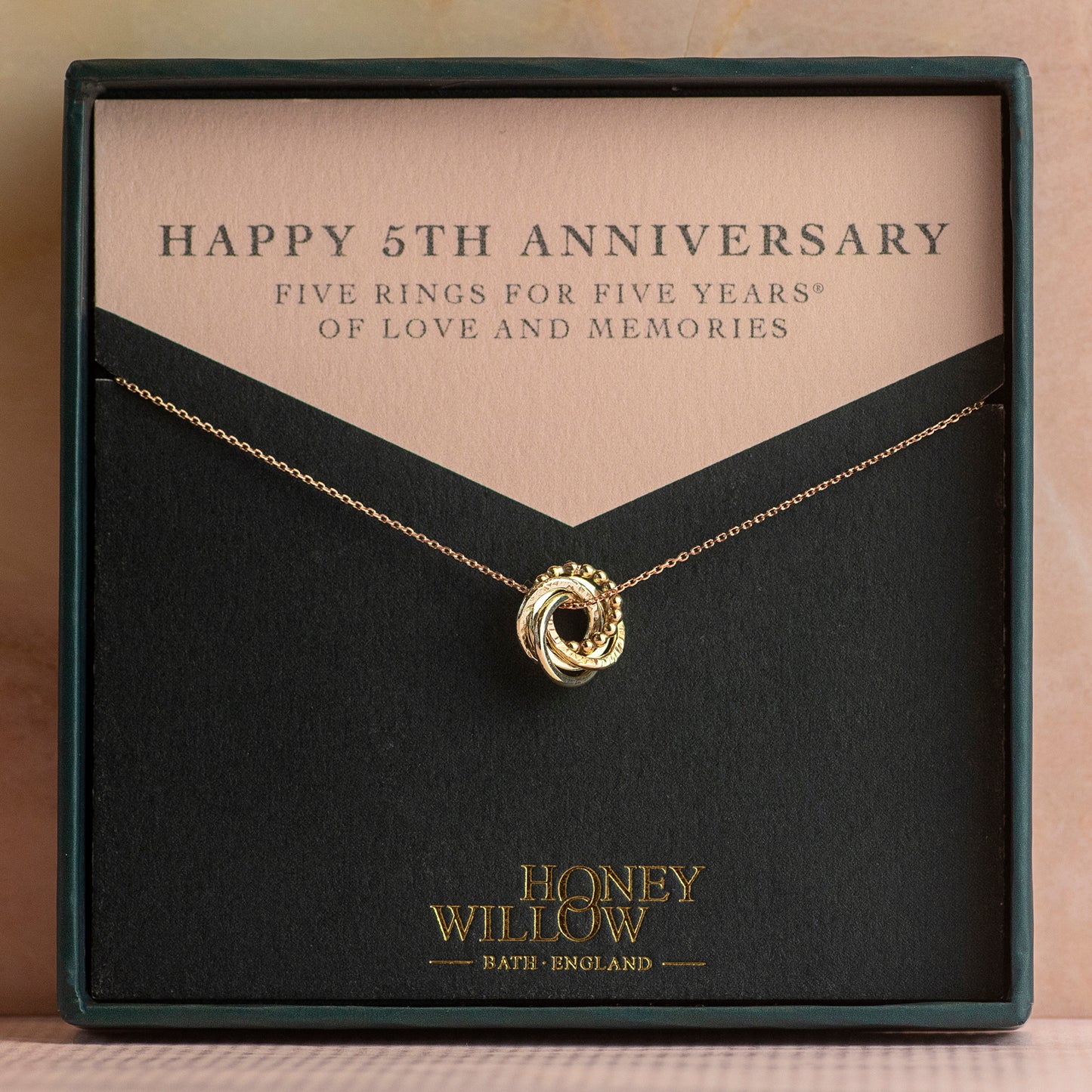 5th Anniversary Love Knot Necklace - 9kt Gold - Rose Gold - Silver - 5 Rings for 5 Years Necklace