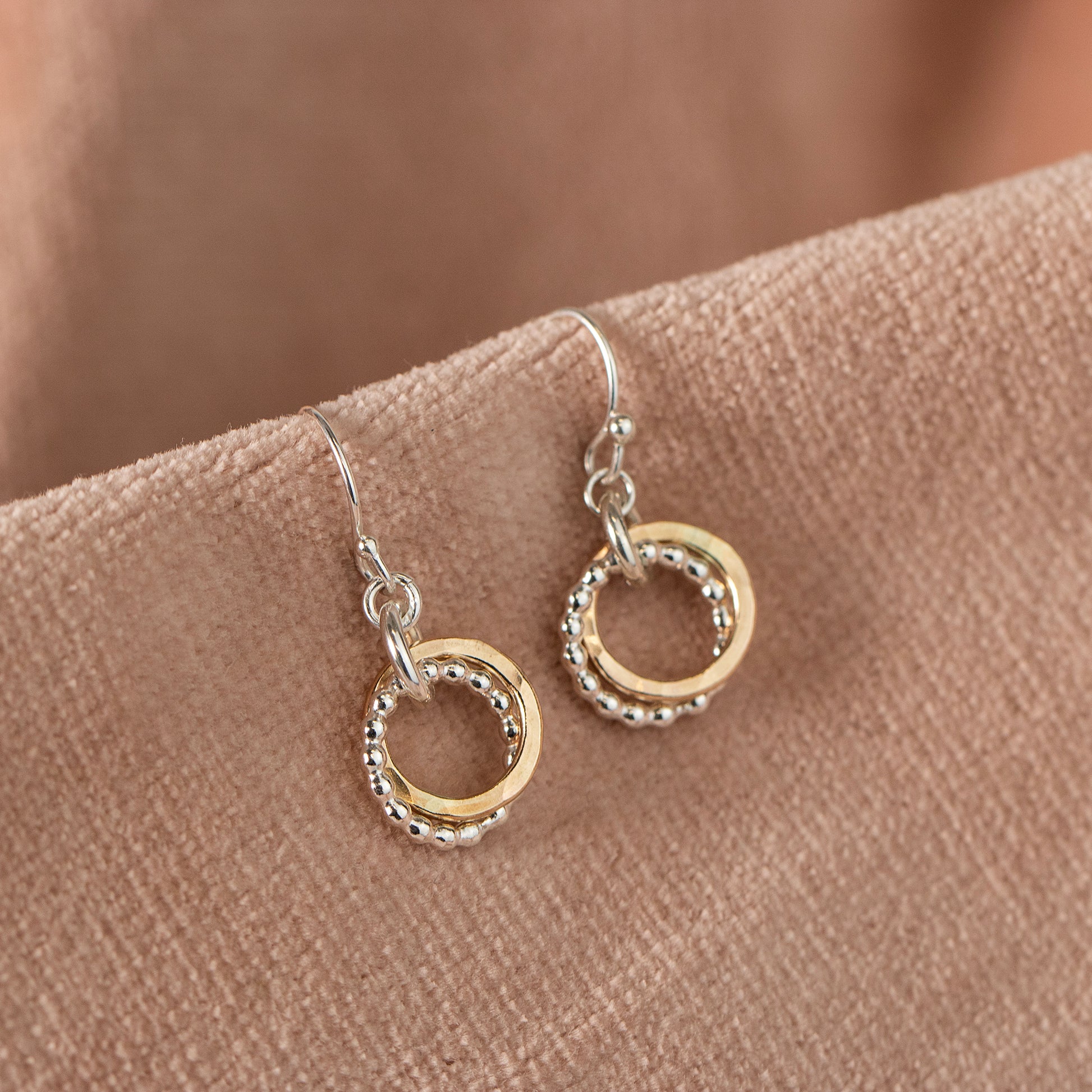 Celebrate your bond with dainty mixed metal love knot earrings.