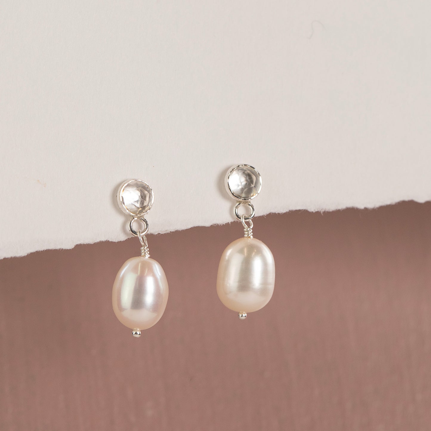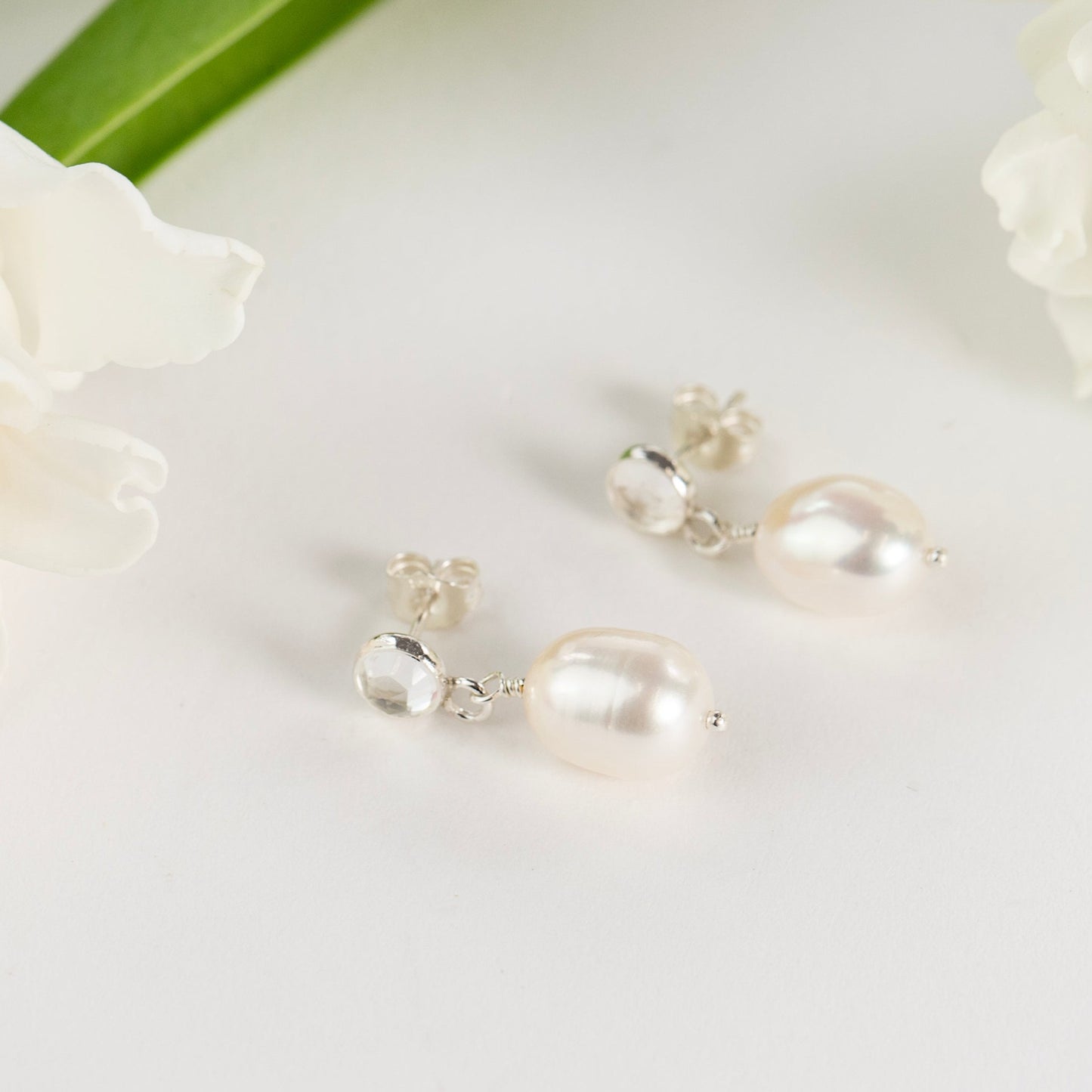 White Topaz & Pearl Earrings - Inspiration - Silver & Gold