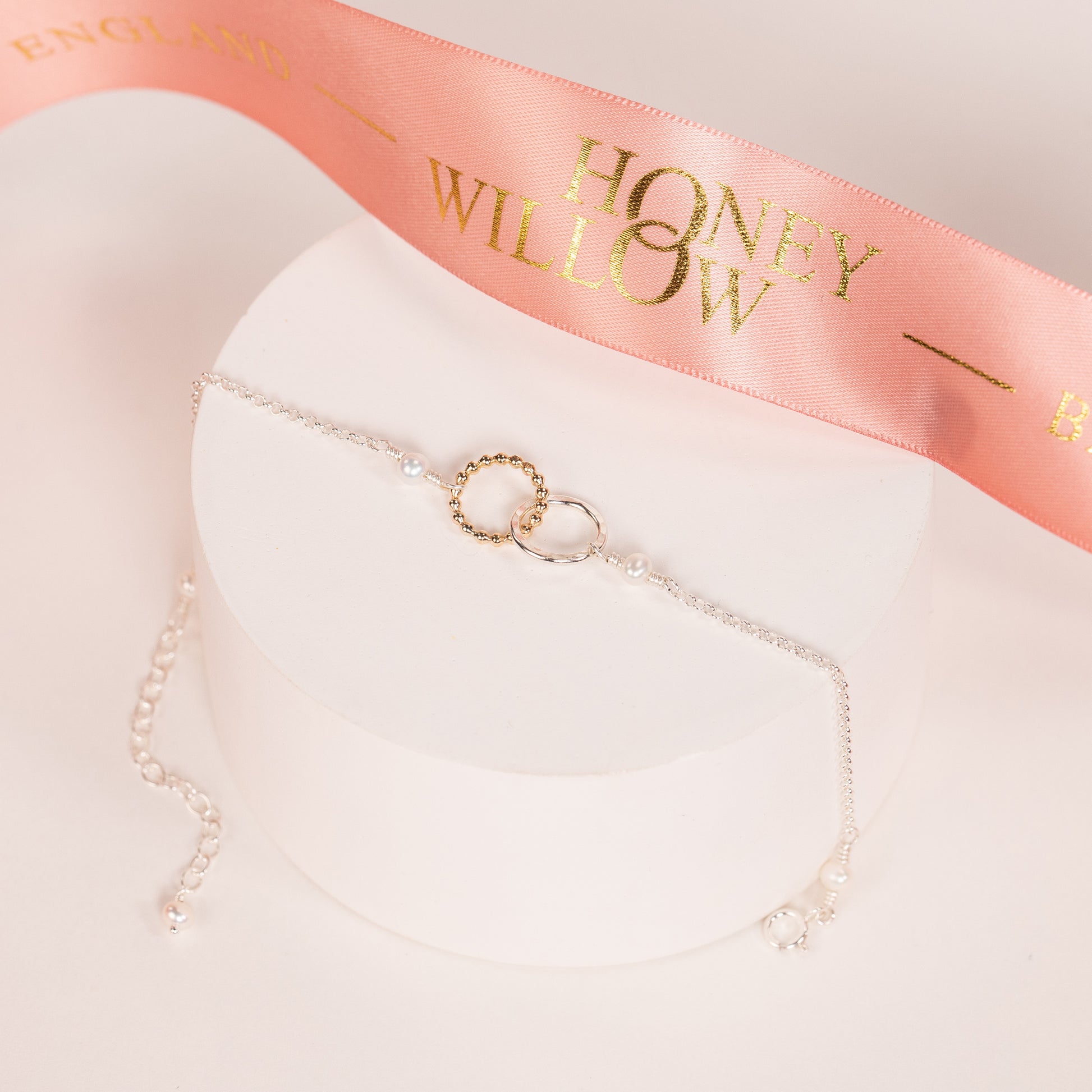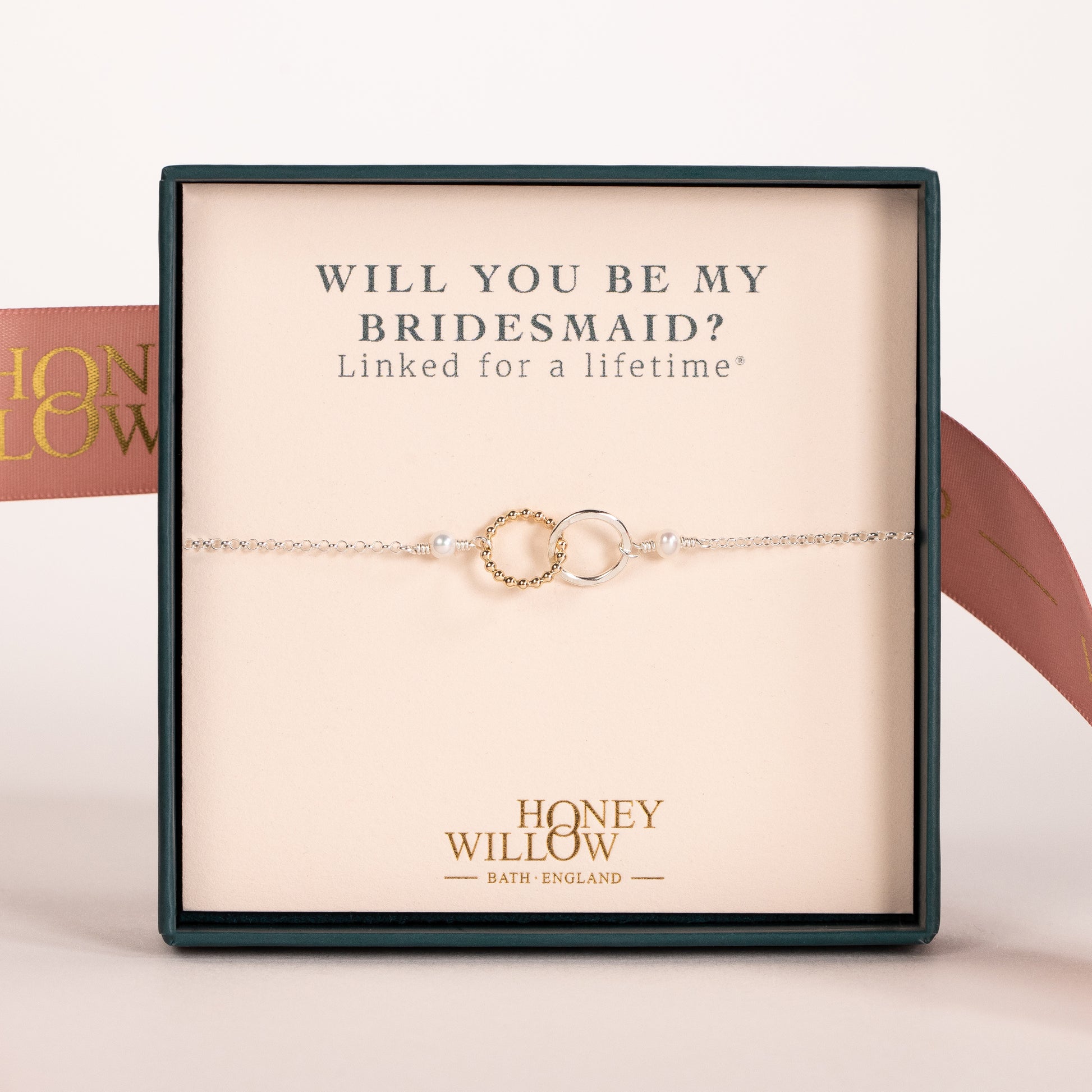 Will You Be My Bridesmaid Gift - Love Link Pearl Bracelet - 9kt Gold & Silver